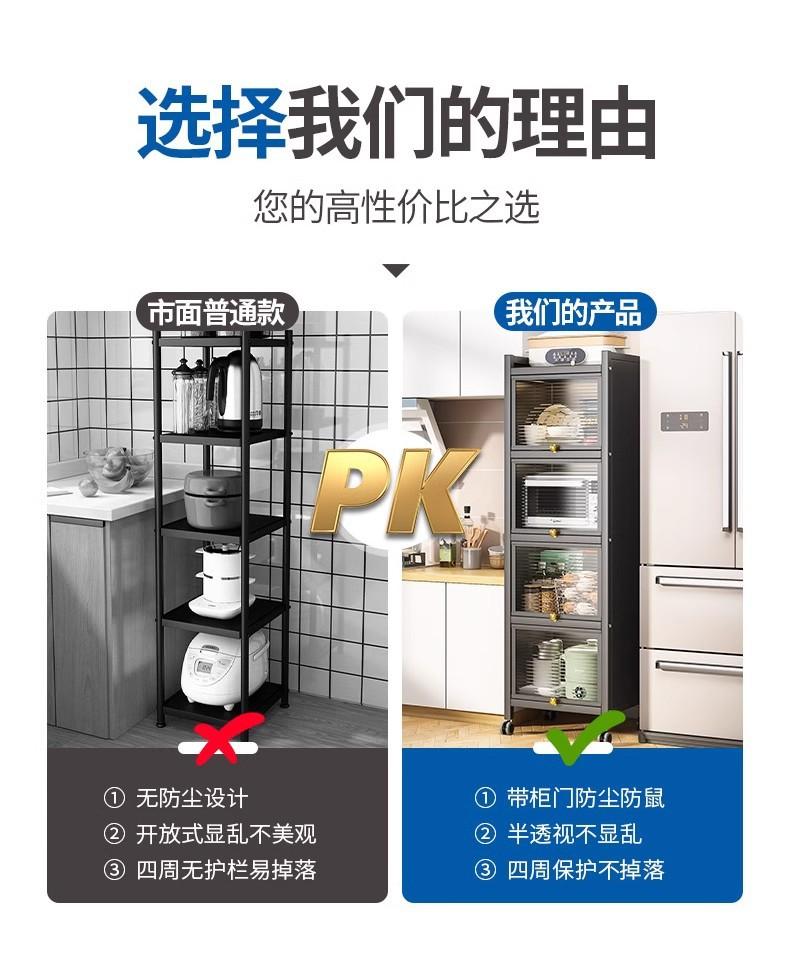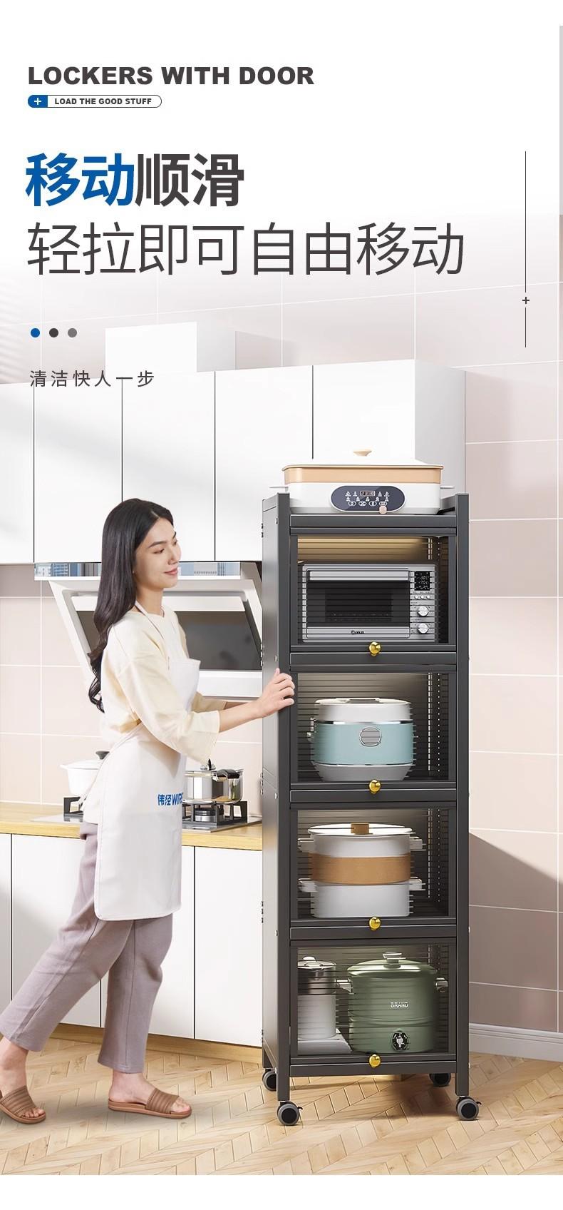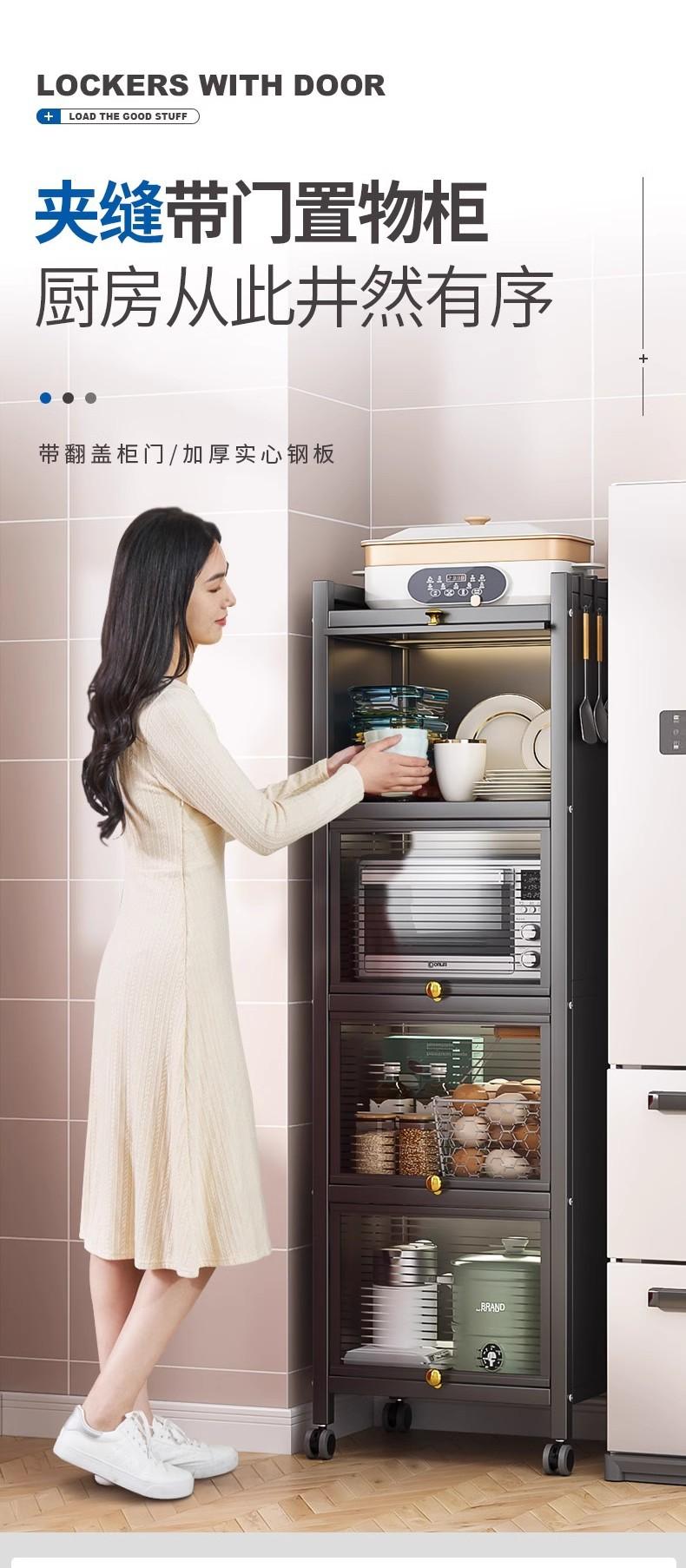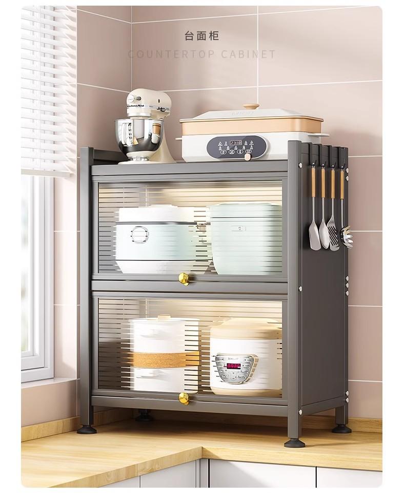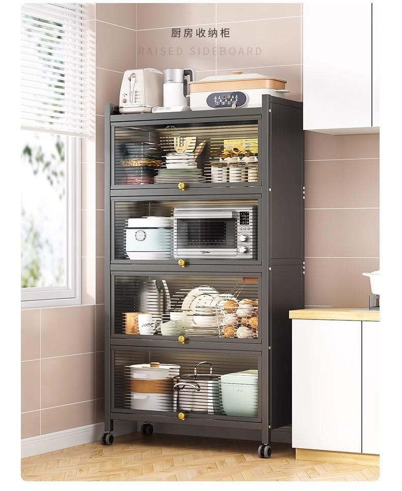 Prateleira de Armazenamento de Cozinha, Armário de Armazenamento de Chão, Armário de Armazenamento, Forno de Micro-ondas, Panela, Forno, Prateleira de Armazenamento com Porta de Armário, Luxo Leve