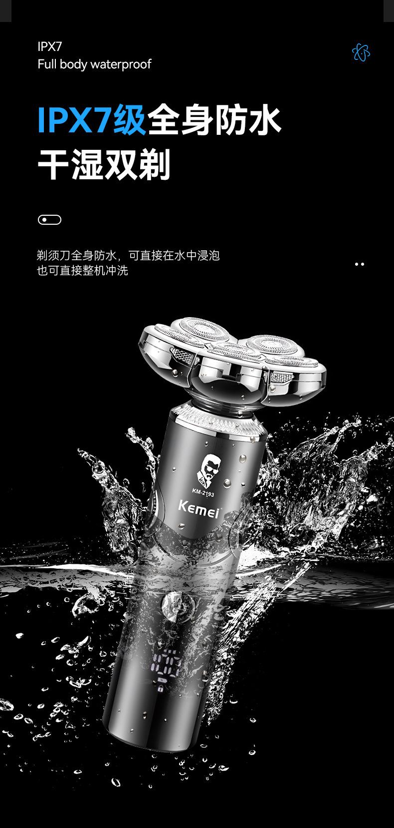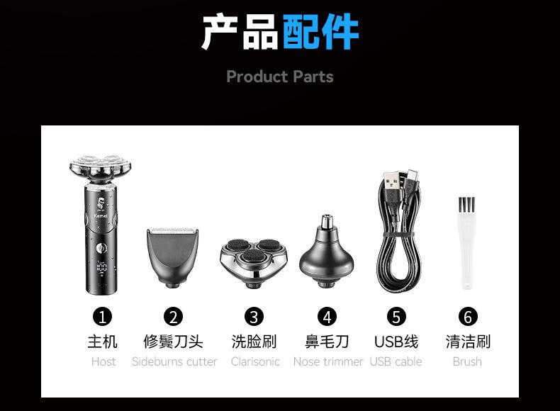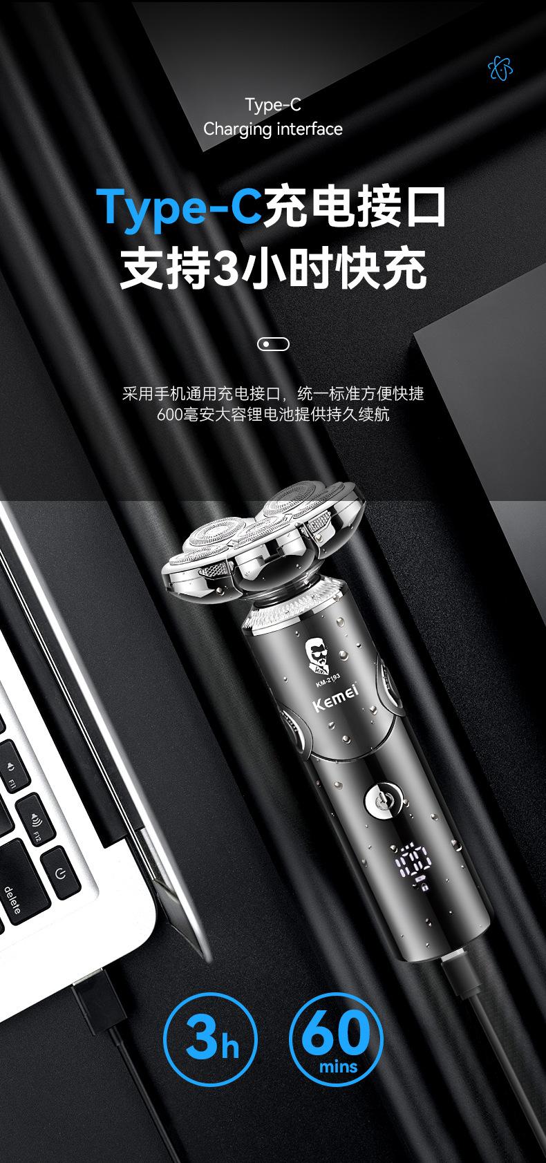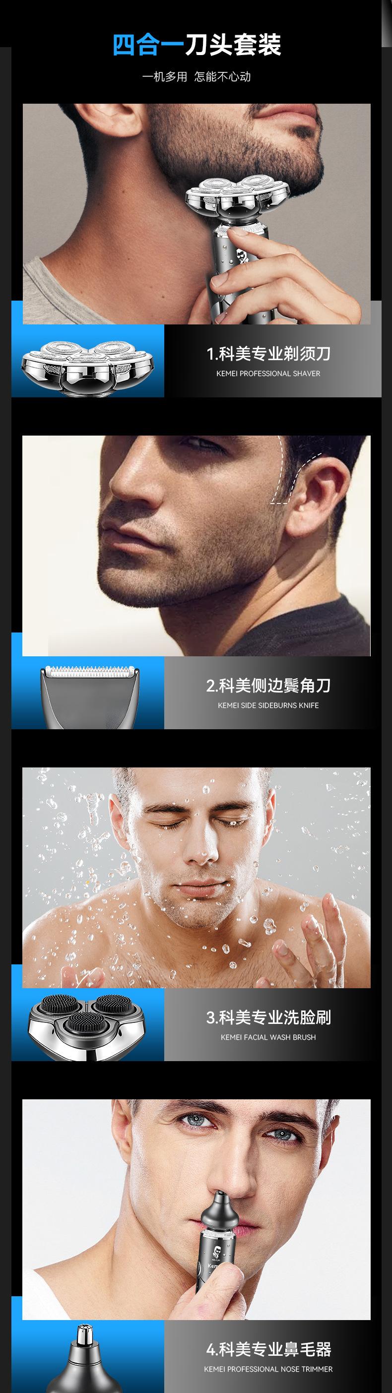 KEMEI novo barbeador elétrico independente flutuante multifuncional quatro em um display digital lavável navalha