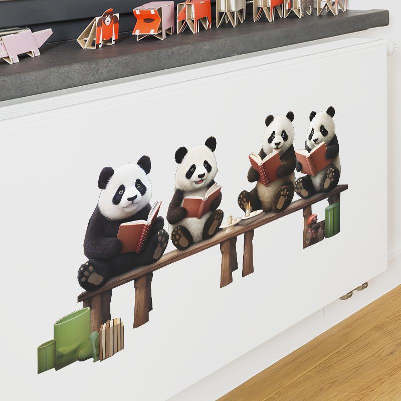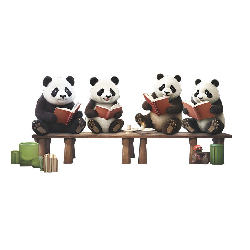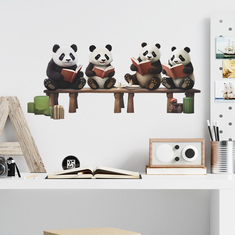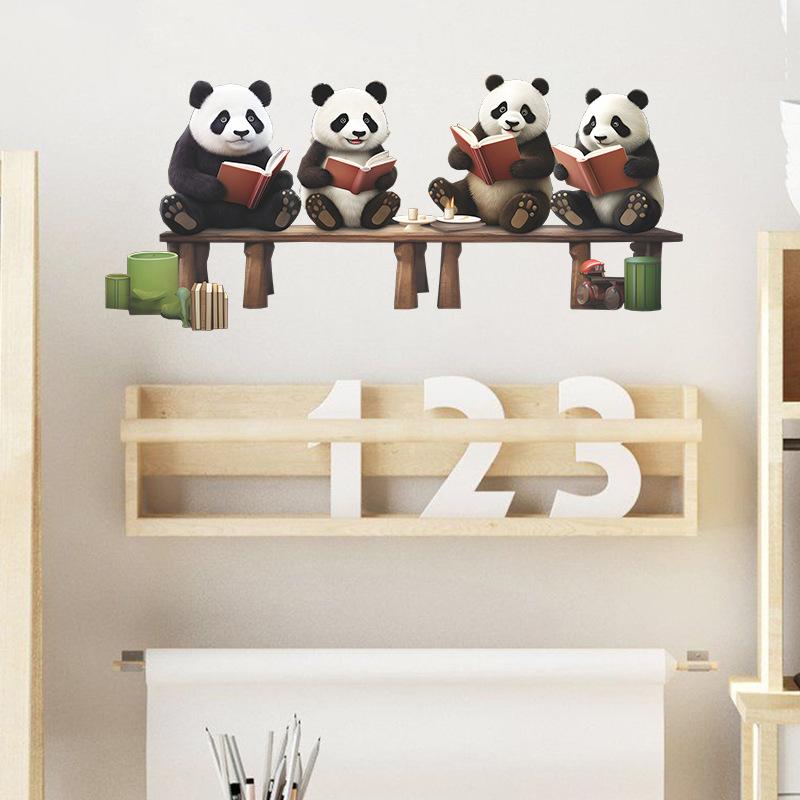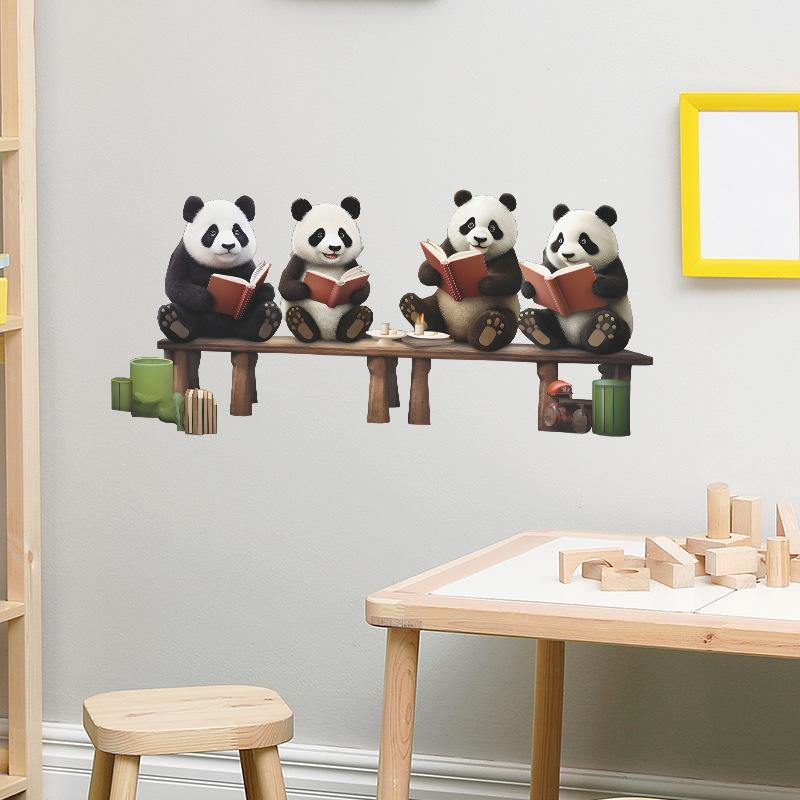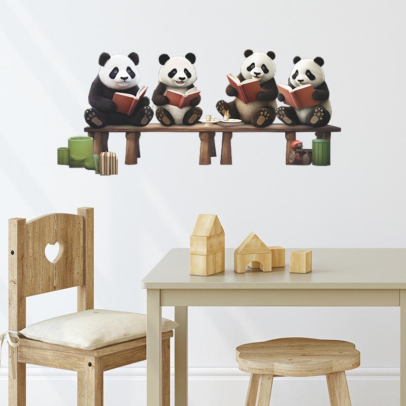 Fx-F552 Desenho Animado Panda Vermelho Fofo Lendo Quarto Infantil Jardim de Infância Fundo Adesivo de Parede Decorativo Atacado