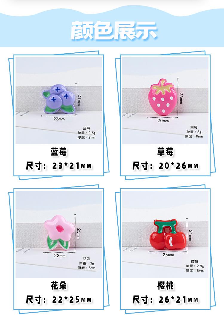 Blueberry, Strawberry, Flowers, Cherry, Carrot, Peach, Pineapple, Watermelon, Mixed style