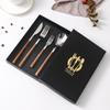 Louça portátil de aço inoxidável ins caixa de presente Bronzing imitação de grão de madeira colher de aço inoxidável 430 faca e garfo Bife Conjunto Especial