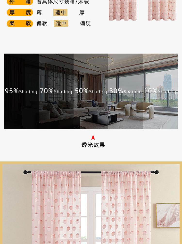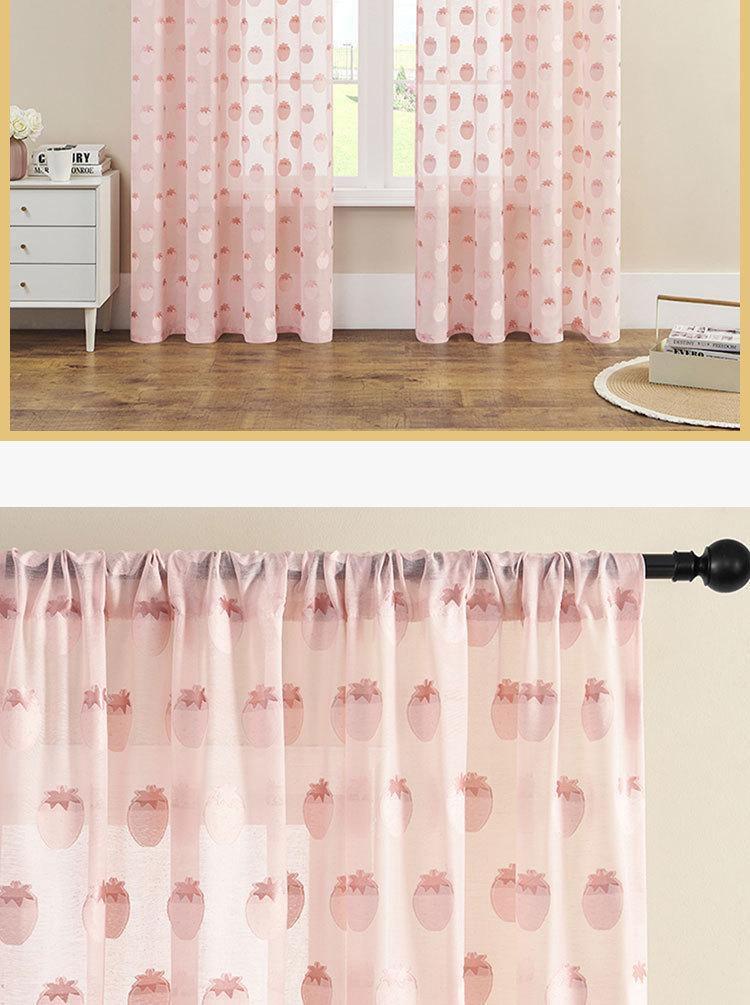 Amazon cross-border cortina transparente morango padrão janela tela semi-sombreamento Rod temu comércio exterior exclusivo