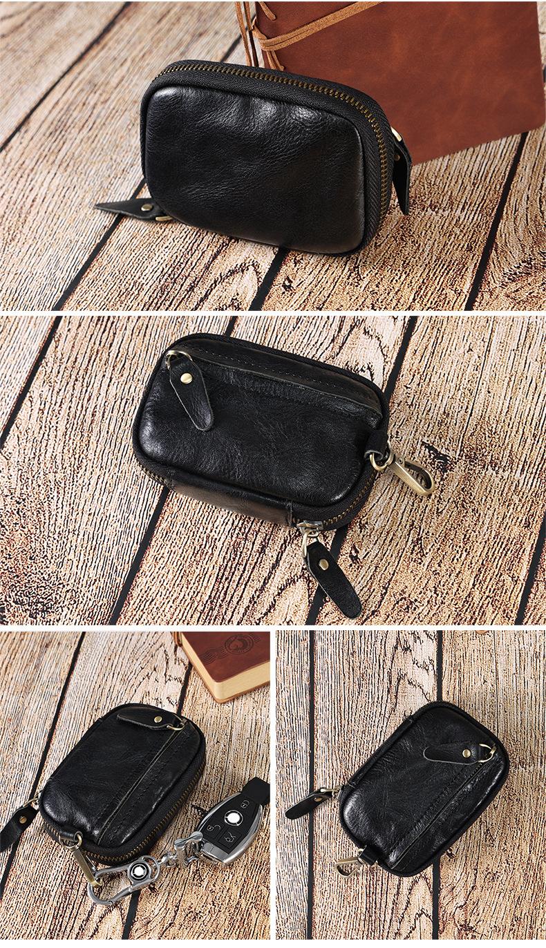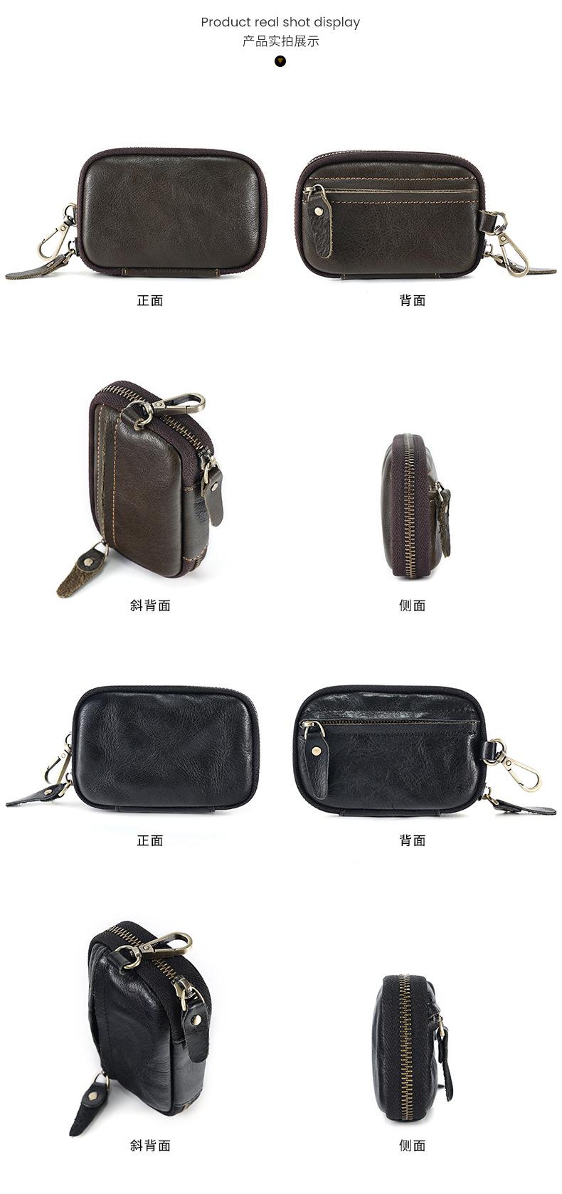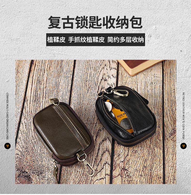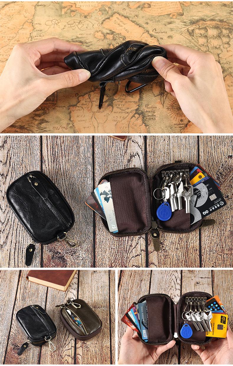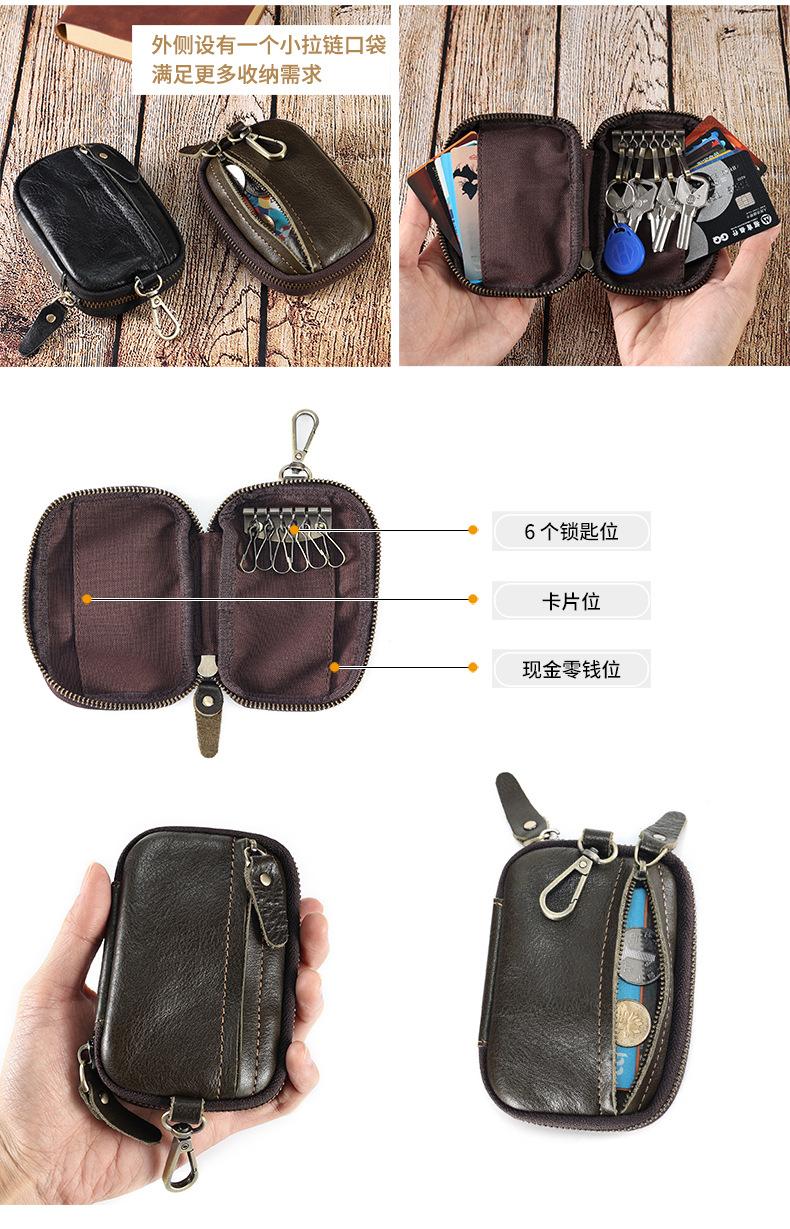Bolsa de chave de couro portátil Bolsa de armazenamento de chave de carro Bolsa de moeda multifuncional com suporte de cartão cintura pendurada Cowhide Key Bag para homens