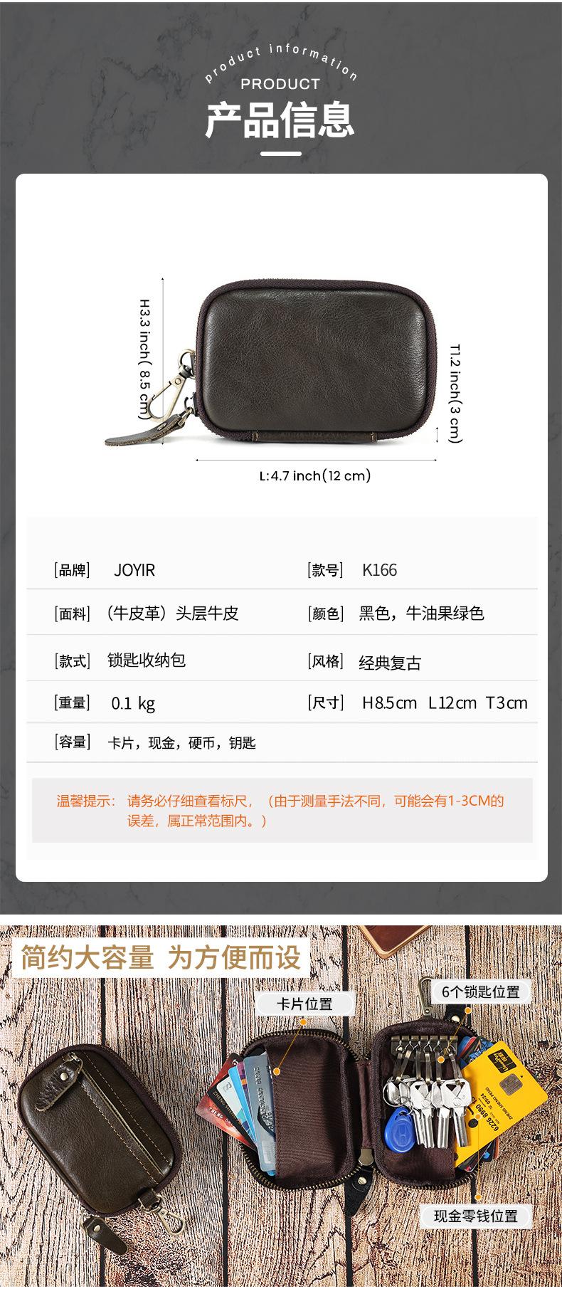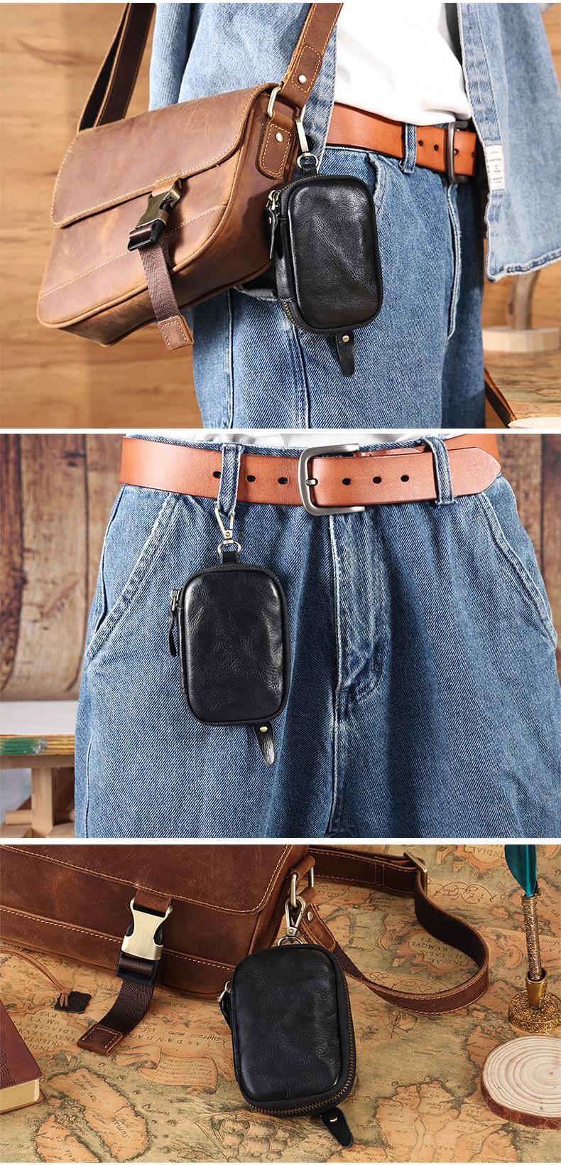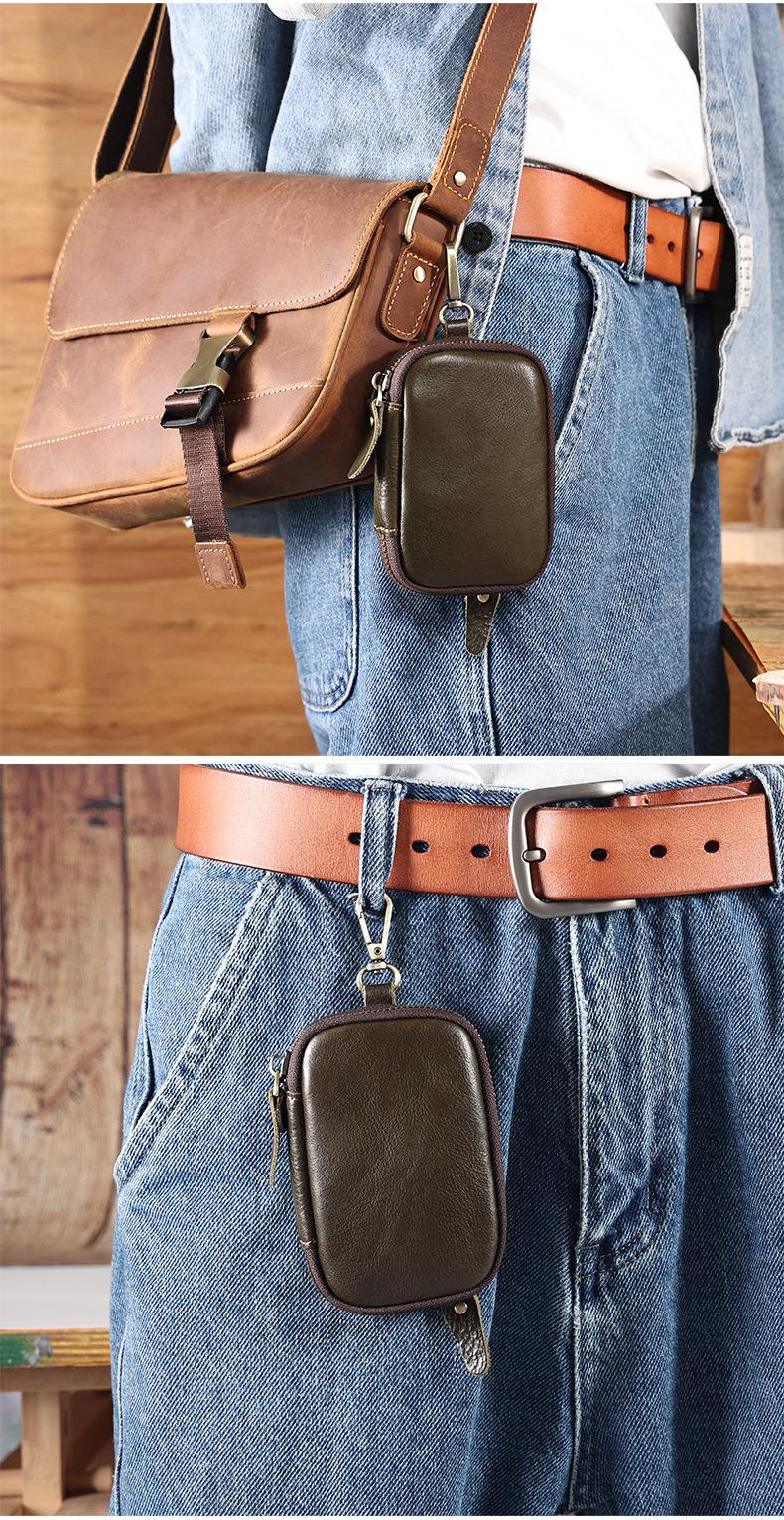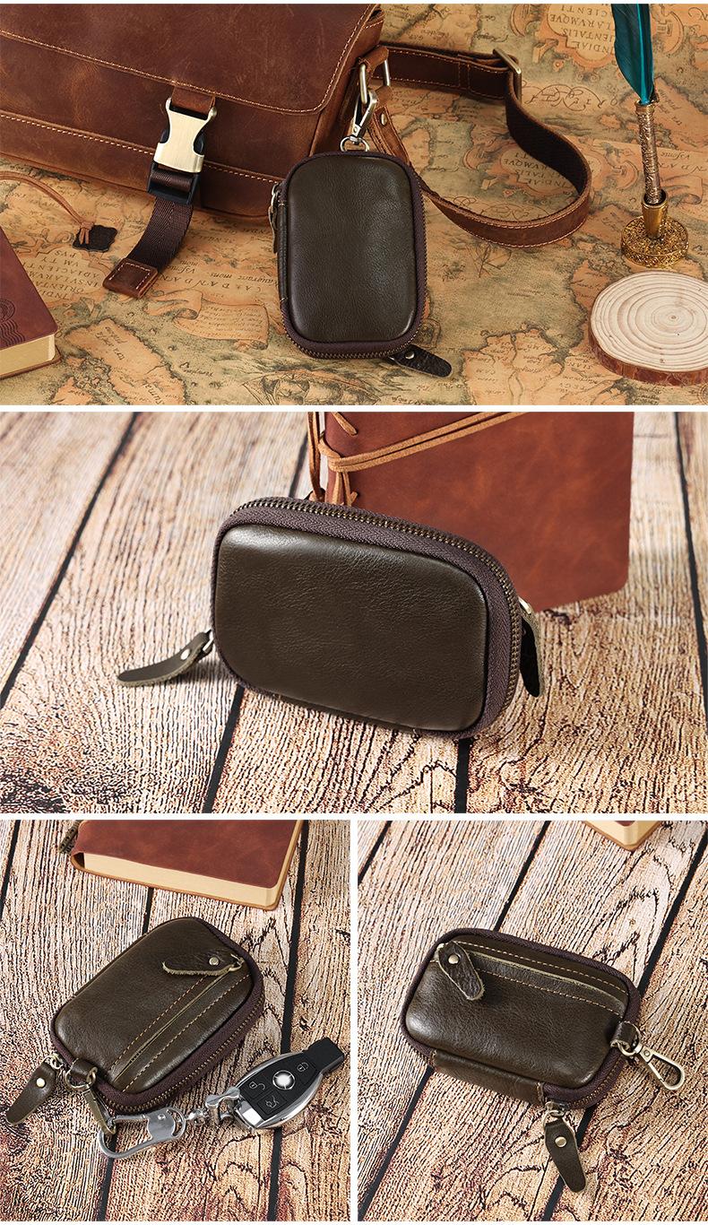 Bolsa de chave de couro portátil Bolsa de armazenamento de chave de carro Bolsa de moeda multifuncional com suporte de cartão cintura pendurada Cowhide Key Bag para homens