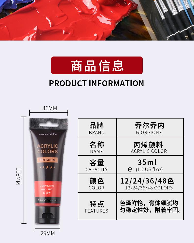 Giorgione 35ml pigmento acrílico terno 48 cores mangueira de plástico enviar 6 pincéis cartão de cor pintura de parede atacado