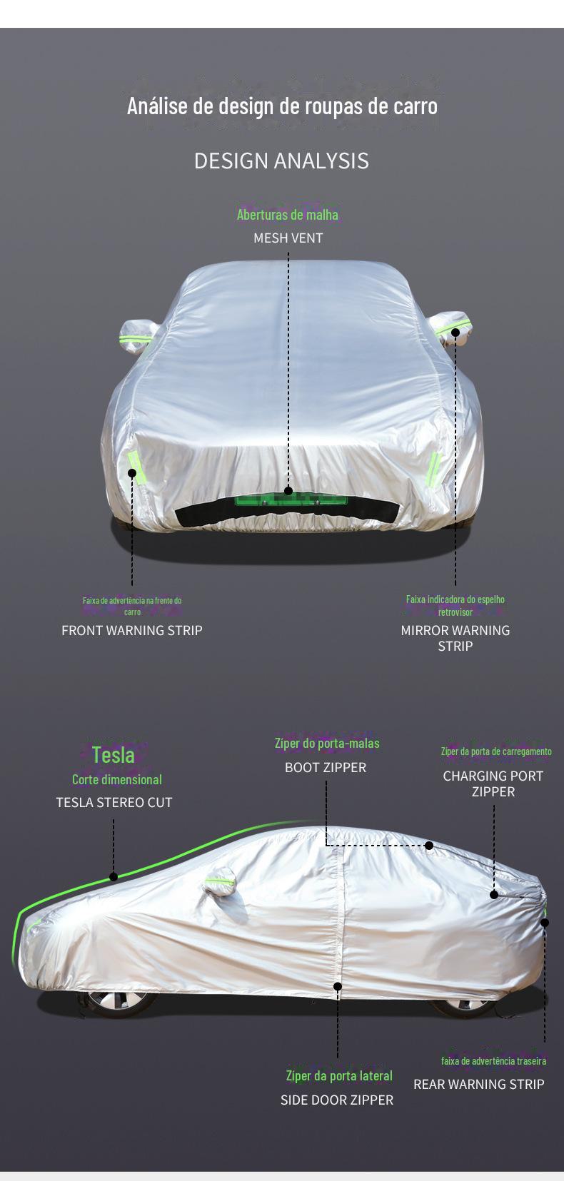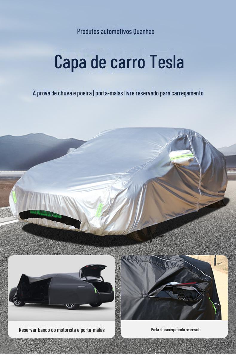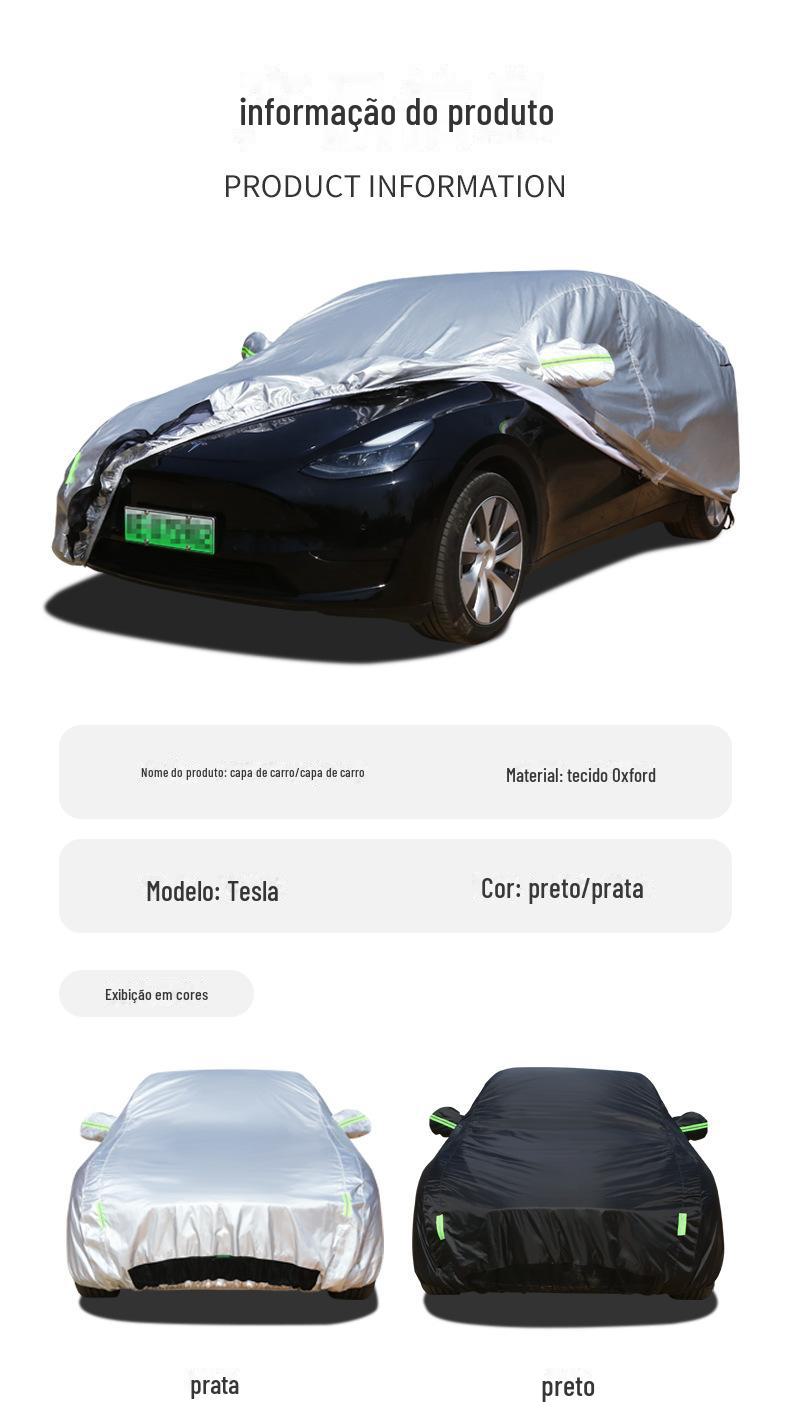 As novas roupas para carros de energia transfronteiriças são adequadas para a edição especial Tesla com cobertura total e isolamento térmico, capa de roupa para carro em tecido Oxford à prova d'água e poeira