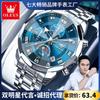Skmei seis pinos cronógrafo masculino relógio de quartzo comércio exterior três olhos Dial Steel Band Business Men's Watch atacado