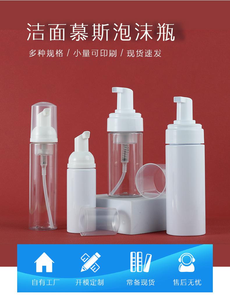 Frasco de espuma de limpeza de 30 dentes personalizado, frasco de espuma PET transparente, 100ml, limpador facial, frasco de espuma de plástico