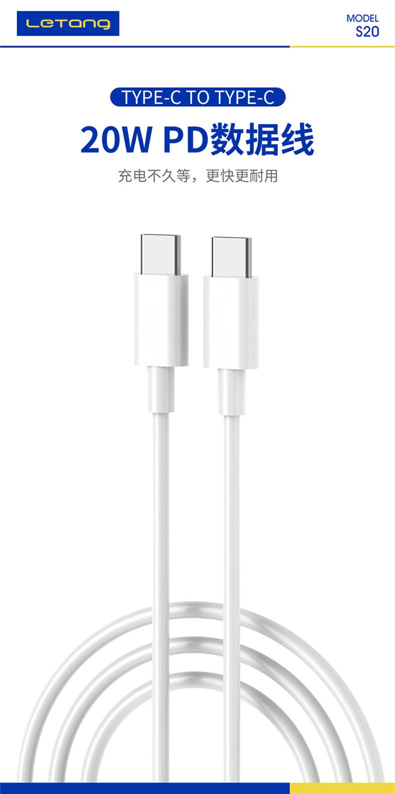 Letang 20W dual Type-C carregamento rápido PD protocolo de dados cabo de carregamento de dados bidirecional para celular laptop