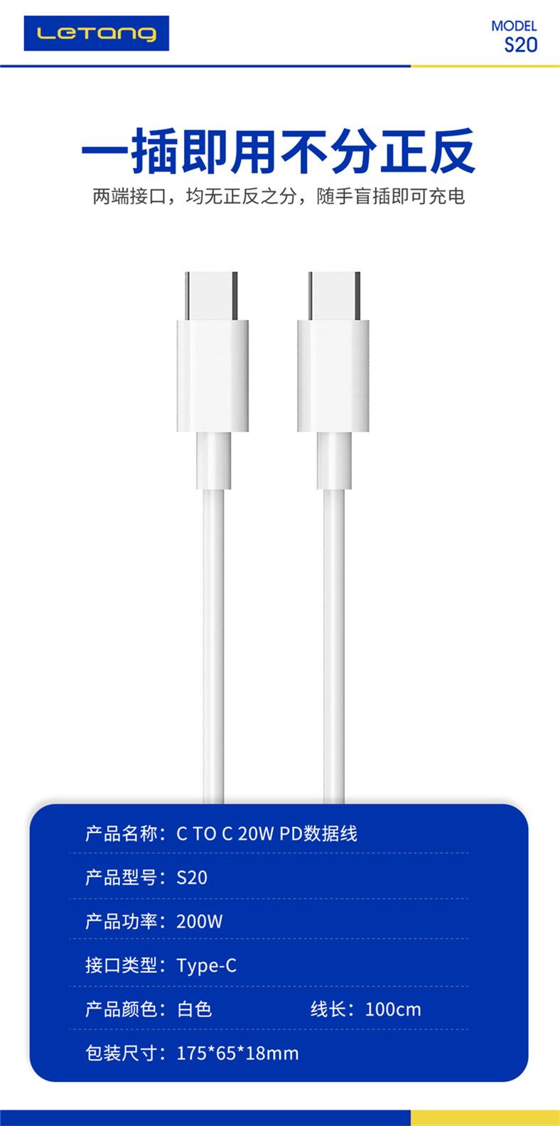 Nome: Letang S20 Dual Tipo-Ccabo de dados20W