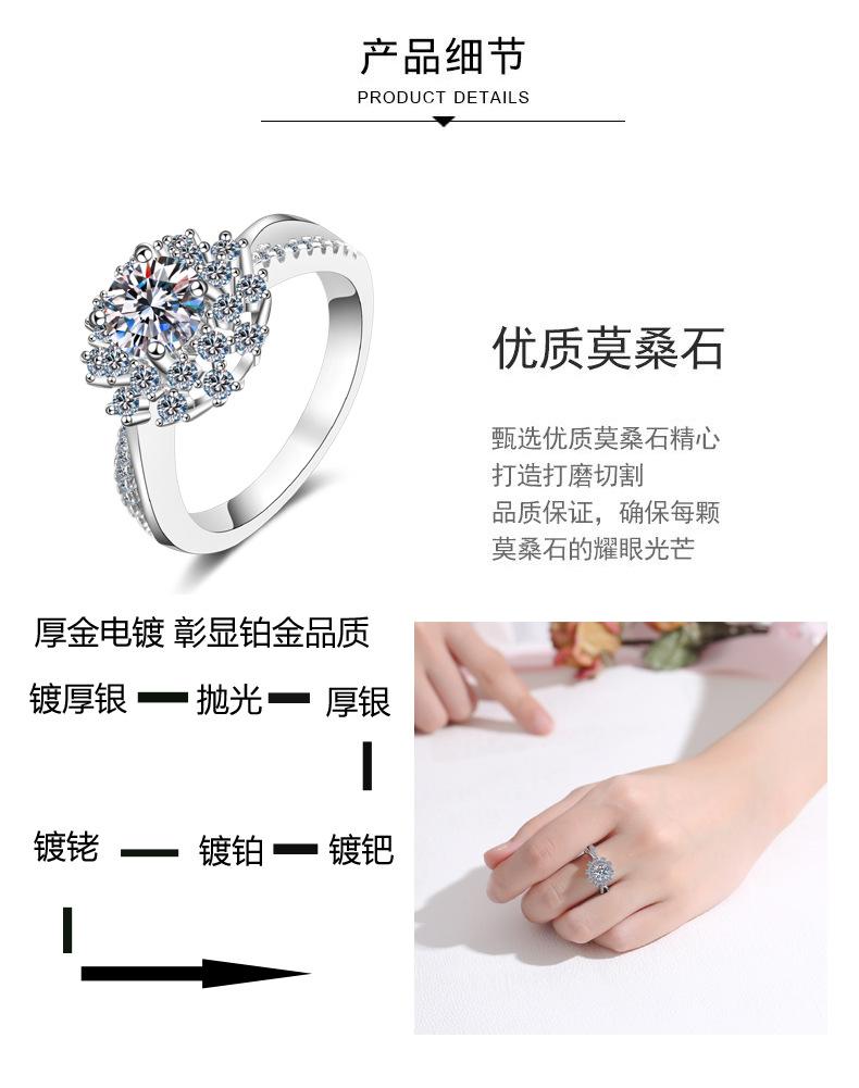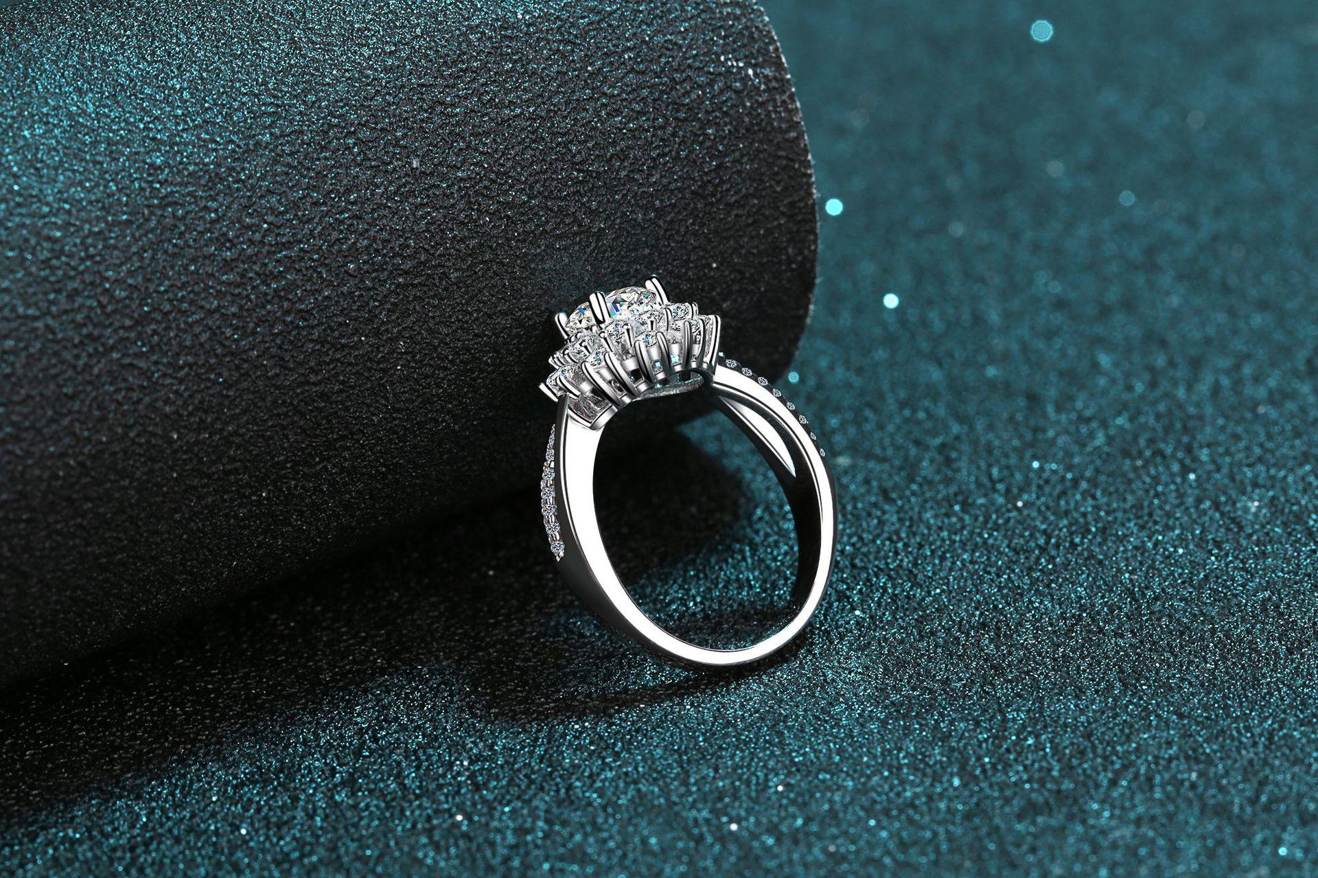 S925 sterling anel de prata fêmea 80 moissanite anel de girassol pt950 banhado a ouro fábrica direto atacado