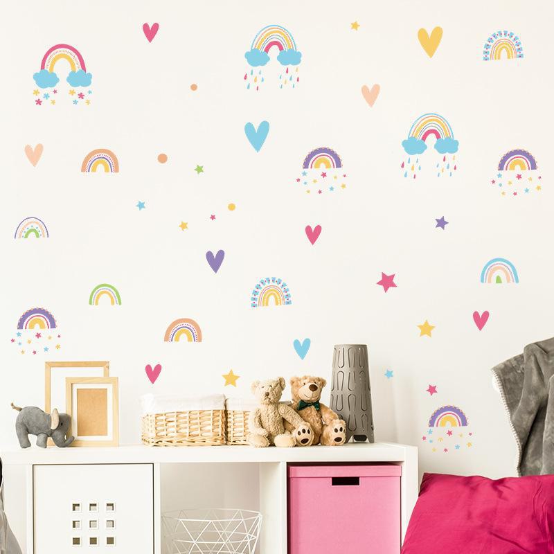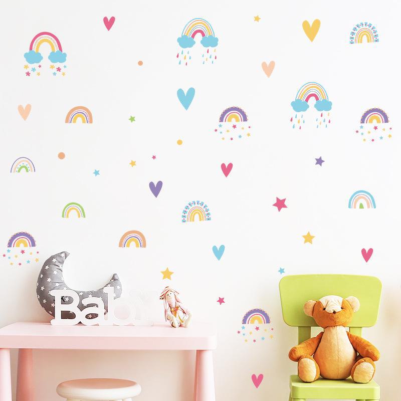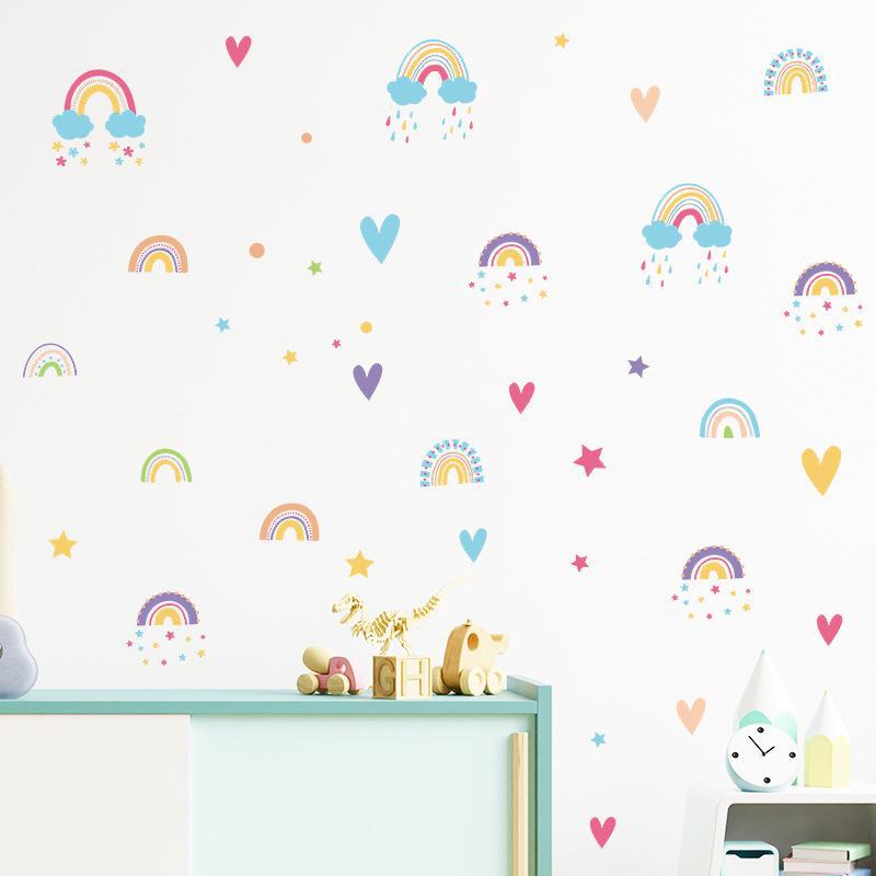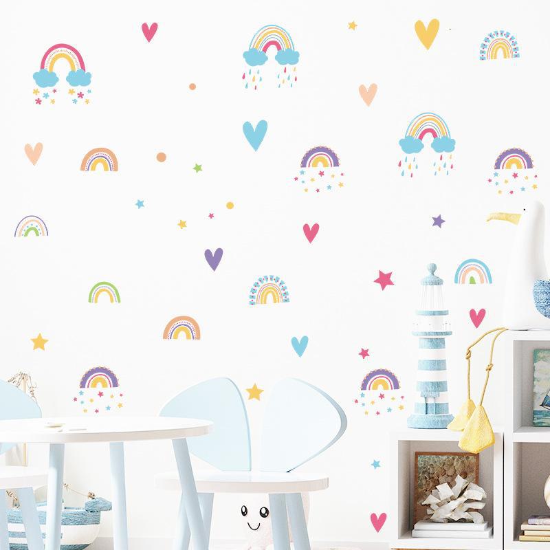 Novo FX-B303 Desenhos animados arco-íris nuvens gotas de chuva amor quarto infantil jardim de infância decoração de parede adesivos de parede