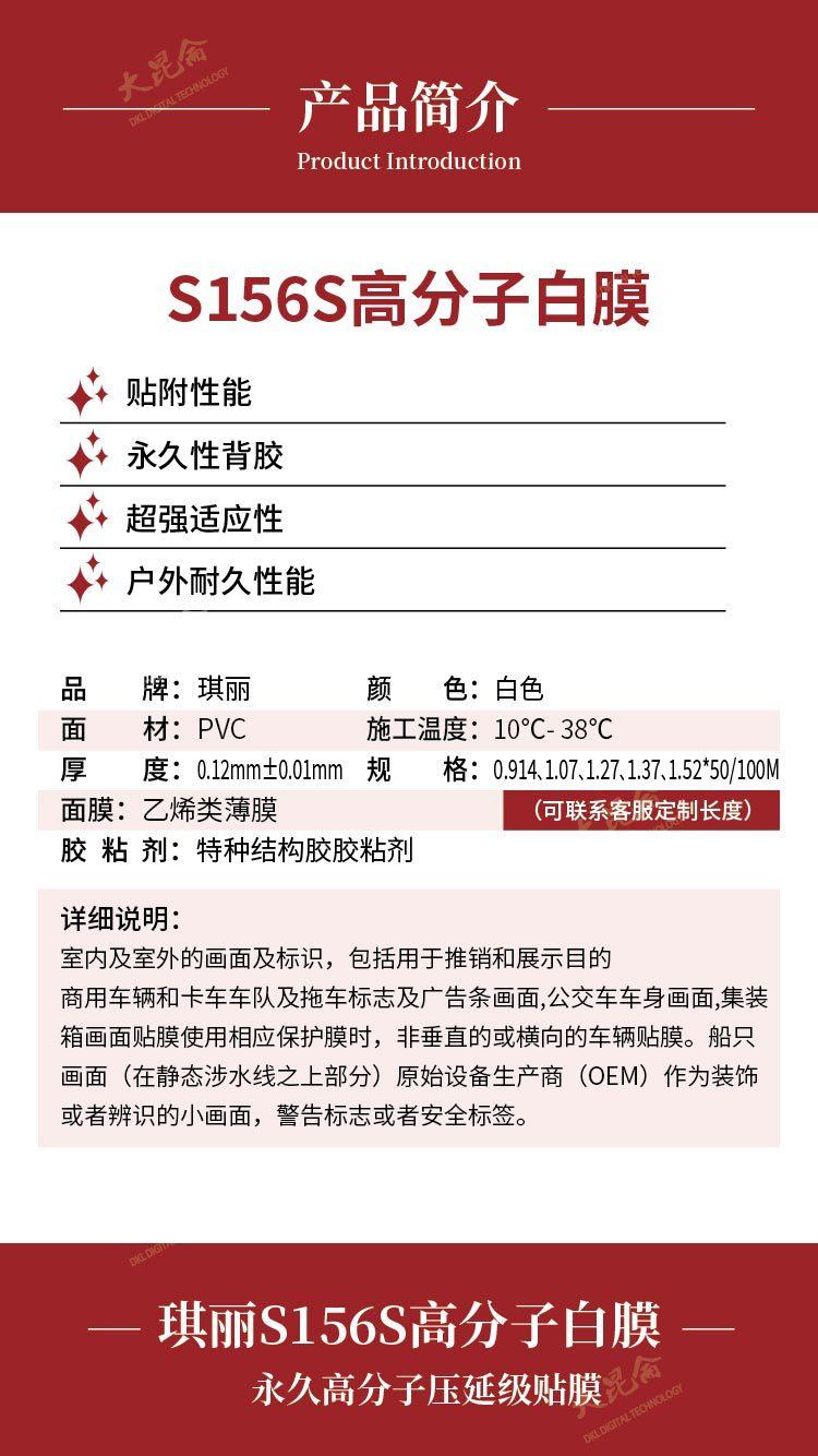 Qili S156 Filme Branco Adesivo Autoadesivo para Exterior Etiqueta Filme para Logotipo Pvc Adesivo para Carroceria Publicidade Consumíveis para Foto
