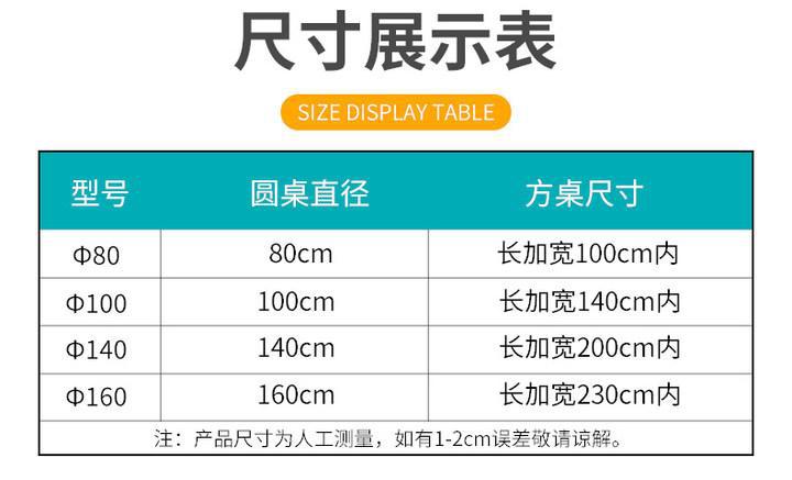 Application: 1 meter diameter round table, 1.8 meters long and wide square table