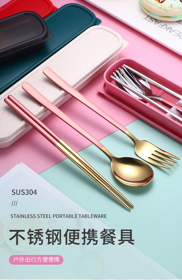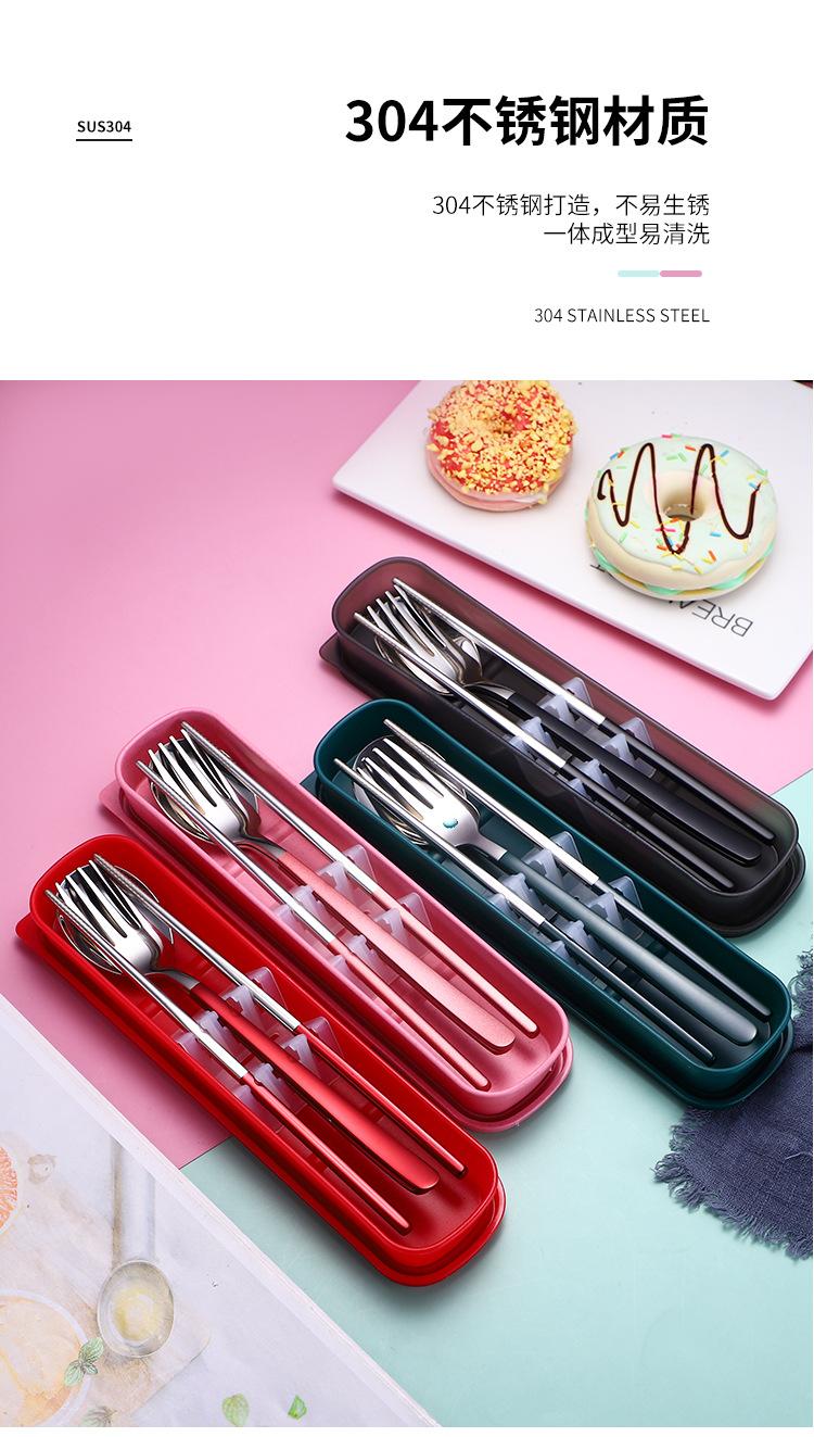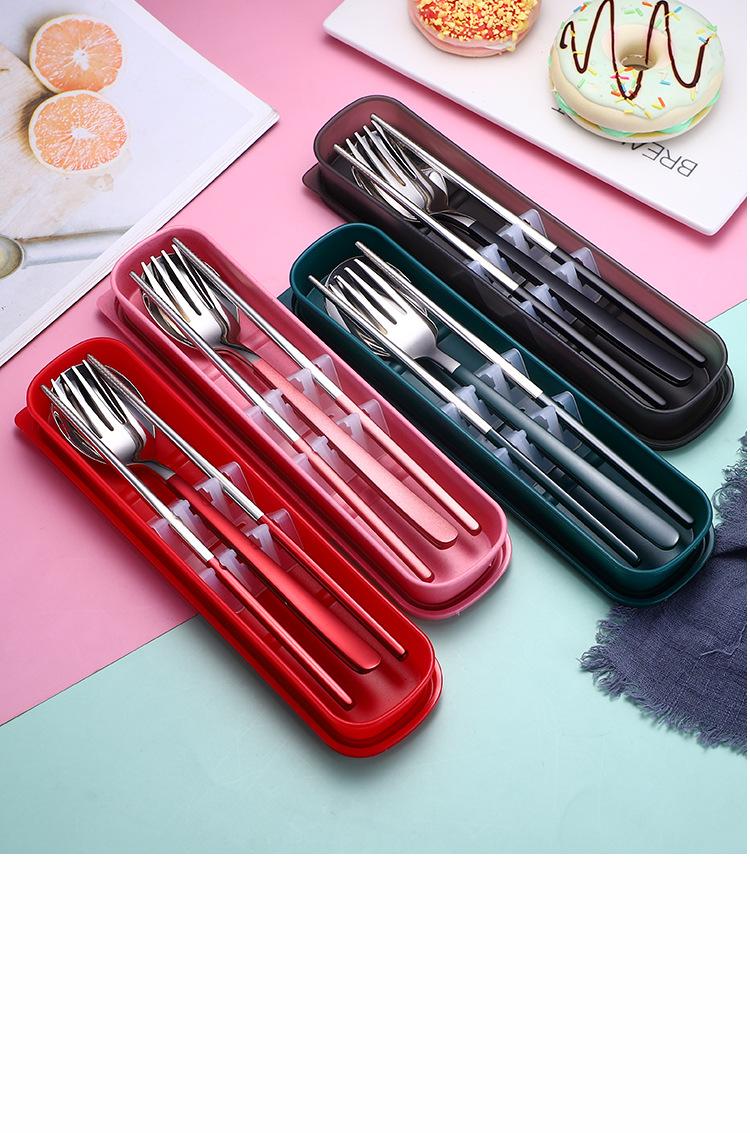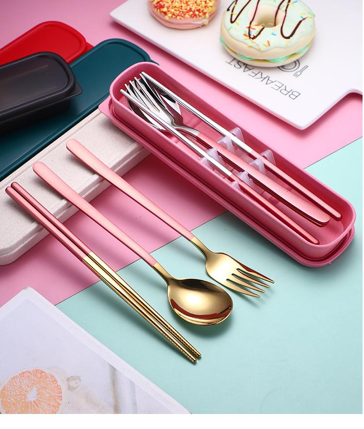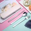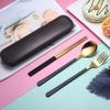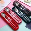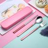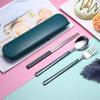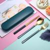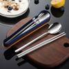Conjunto de louça portátil 304 colher de aço inoxidável e pauzinhos de garfo Conjunto de três peças Estudante Tableware estilo coreano colher e pauzinhos Set