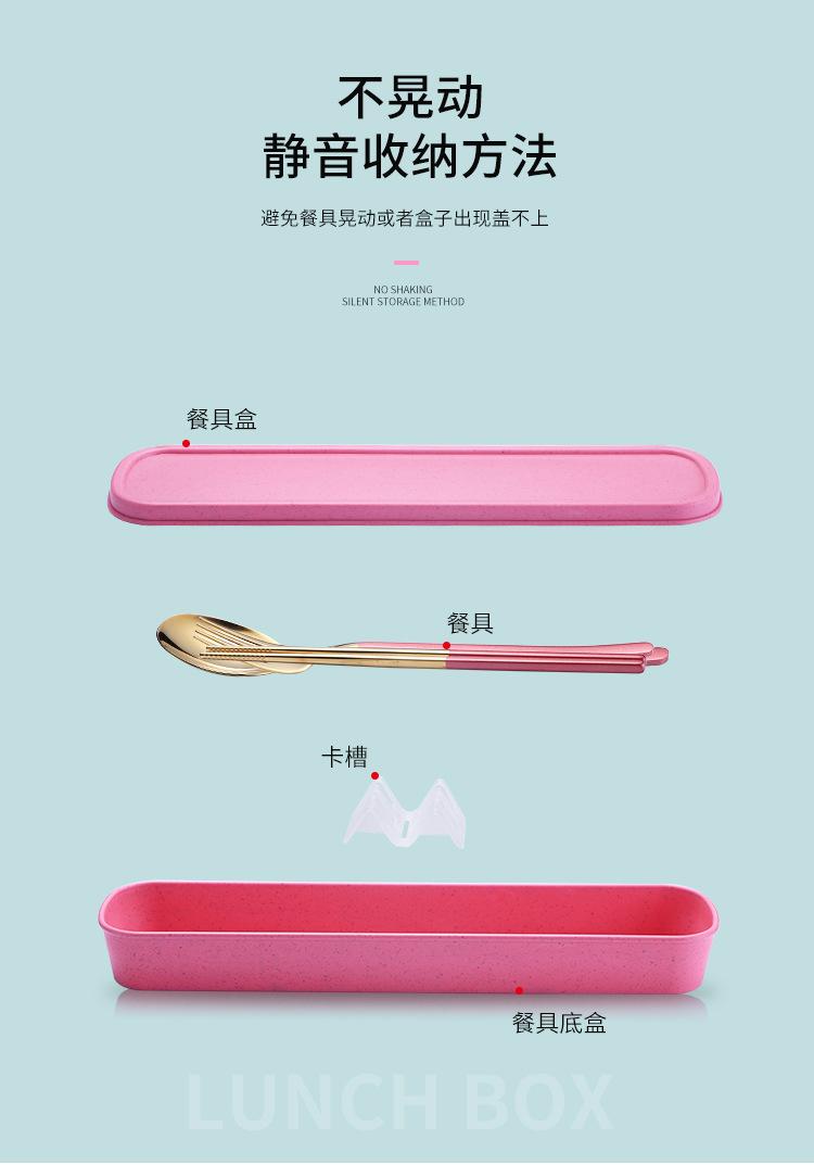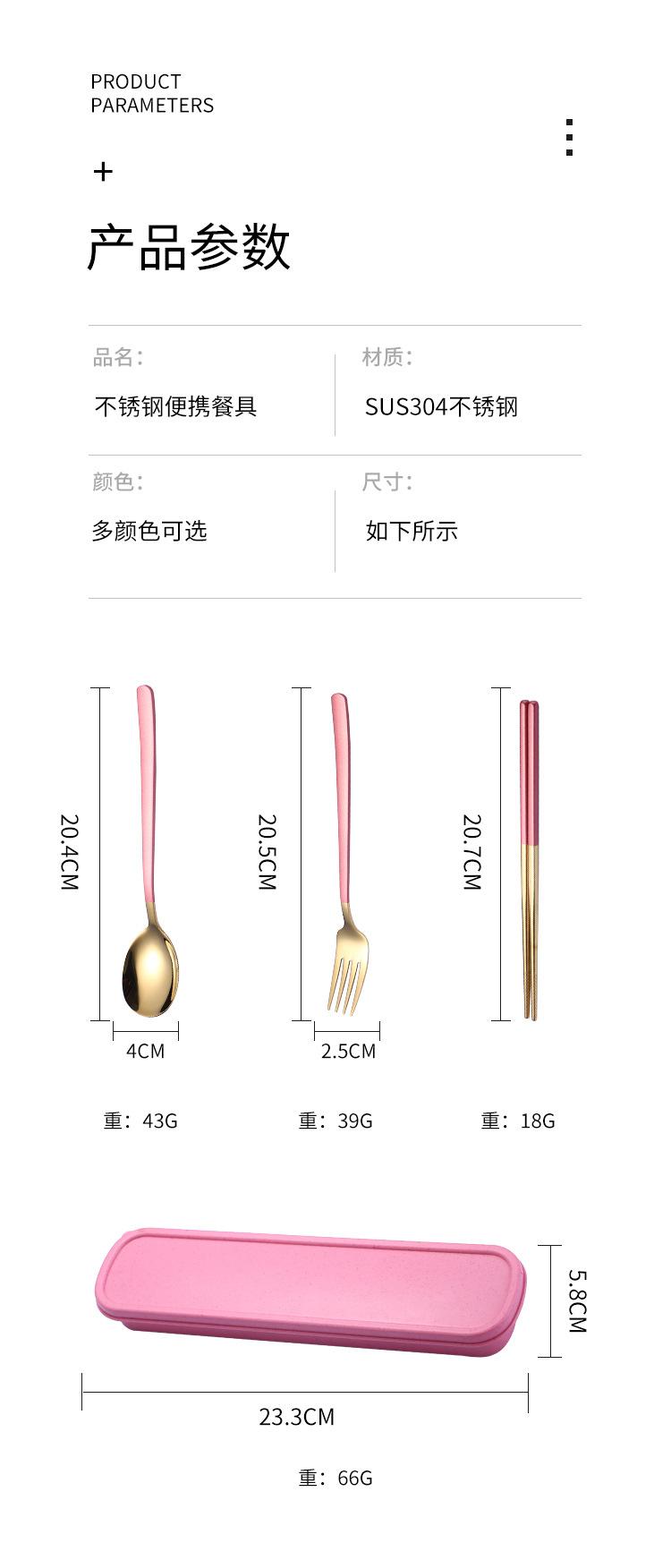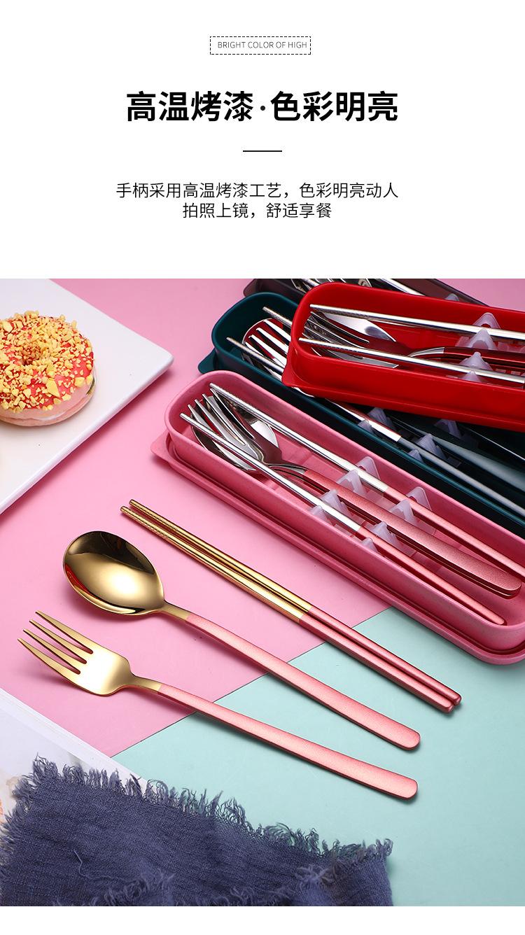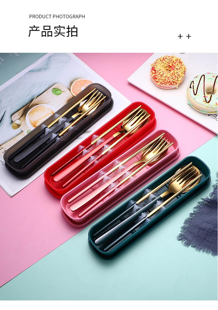 Conjunto de louça portátil 304 colher de aço inoxidável e pauzinhos de garfo Conjunto de três peças Estudante Tableware estilo coreano colher e pauzinhos Set