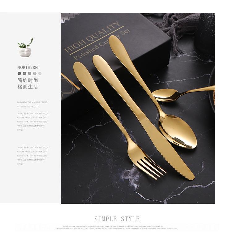 Talheres de Aço Inoxidável Conjunto de 24 Peças 1012 Conjunto de Faca, Garfo e Colher Caixa de Presente Ins Festa de Família Faca de Bife, Garfo e Colher Estilo Ins