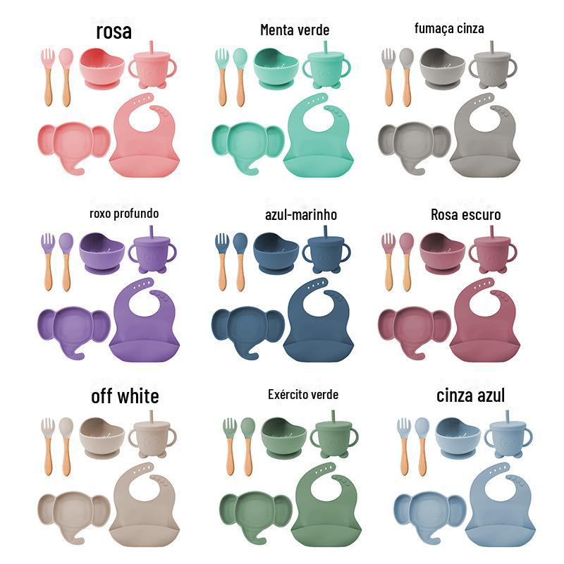 [Nome do produto]: conjunto de talheres infantis [Material]: silicone de qualidade alimentar