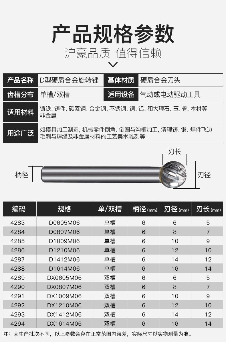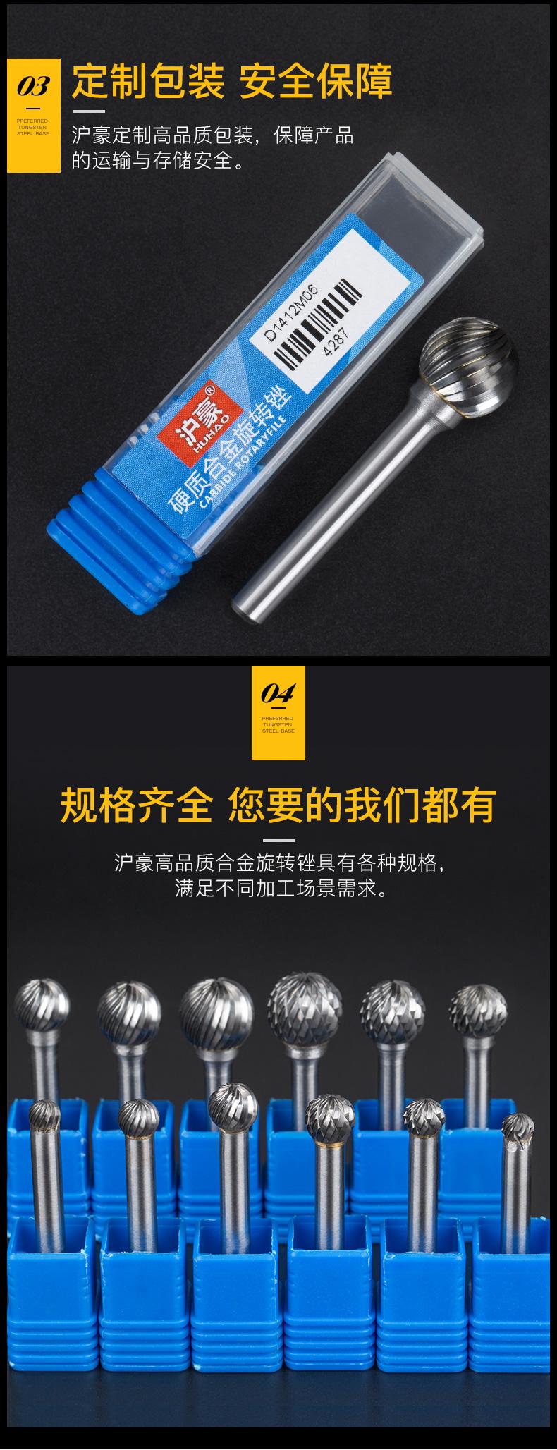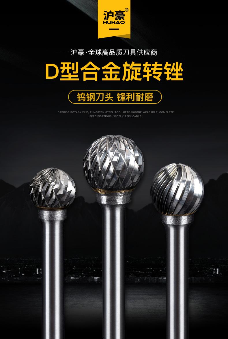 Huhao D tipo de liga dura lima rotativa simples e dupla design de ranhura de aço de tungstênio cabeça de moagem de metal cabeça de moagem de gravura elétrica