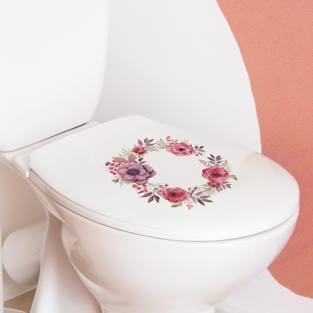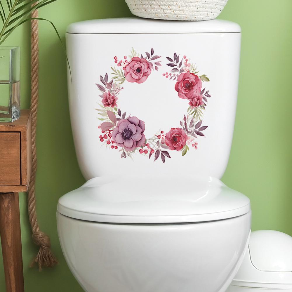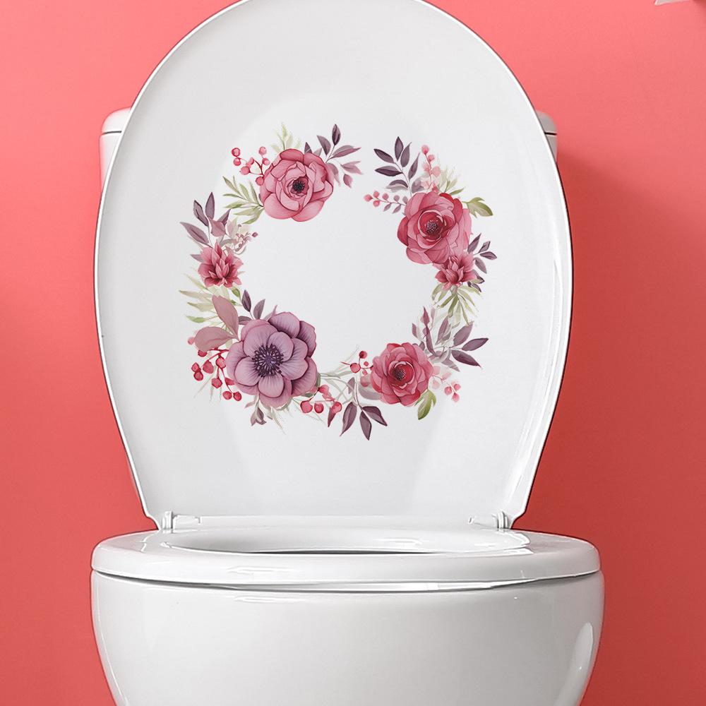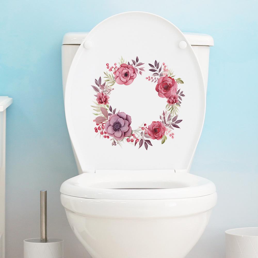 Novo fun-m45 fresco folha de rosa adesivos de vaso sanitário casa de banho adesivos de parede decorativos