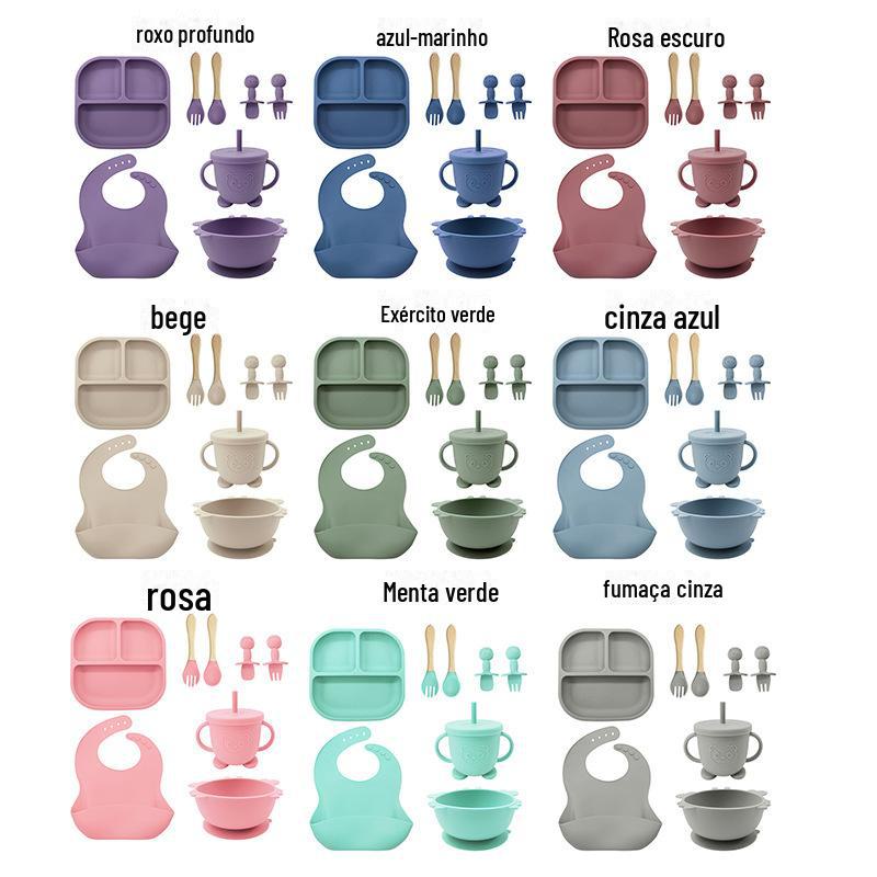 [Nome do produto]: conjunto de talheres infantis [Material]: silicone de qualidade alimentar
