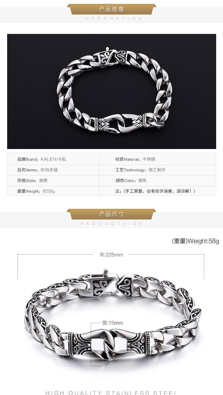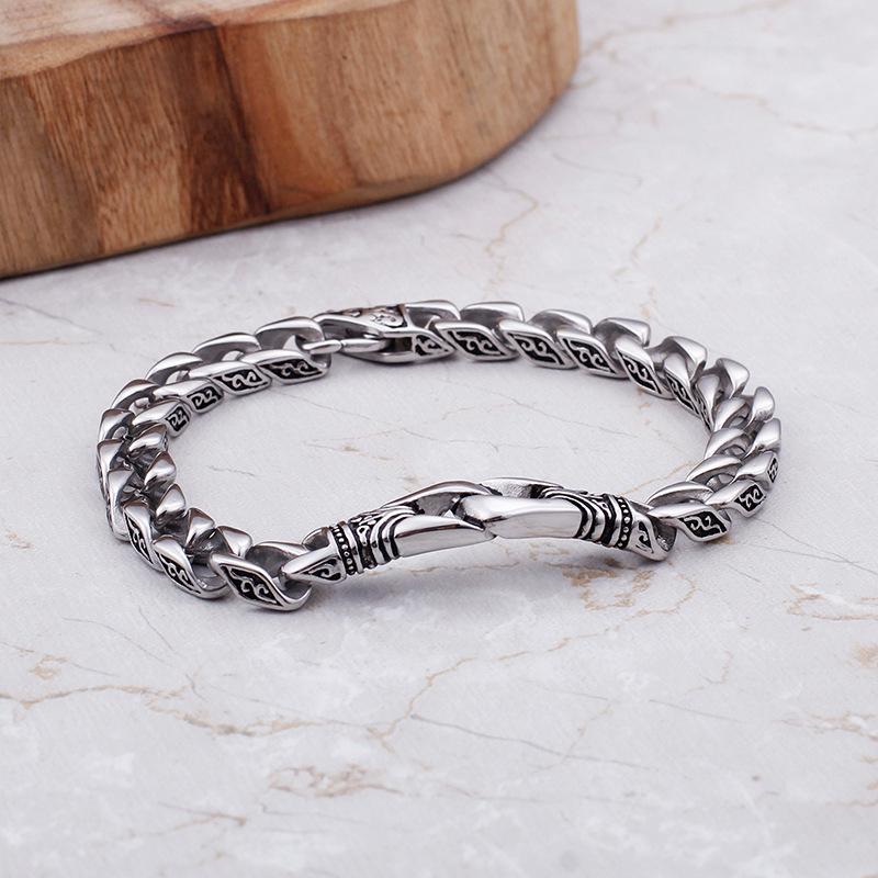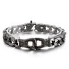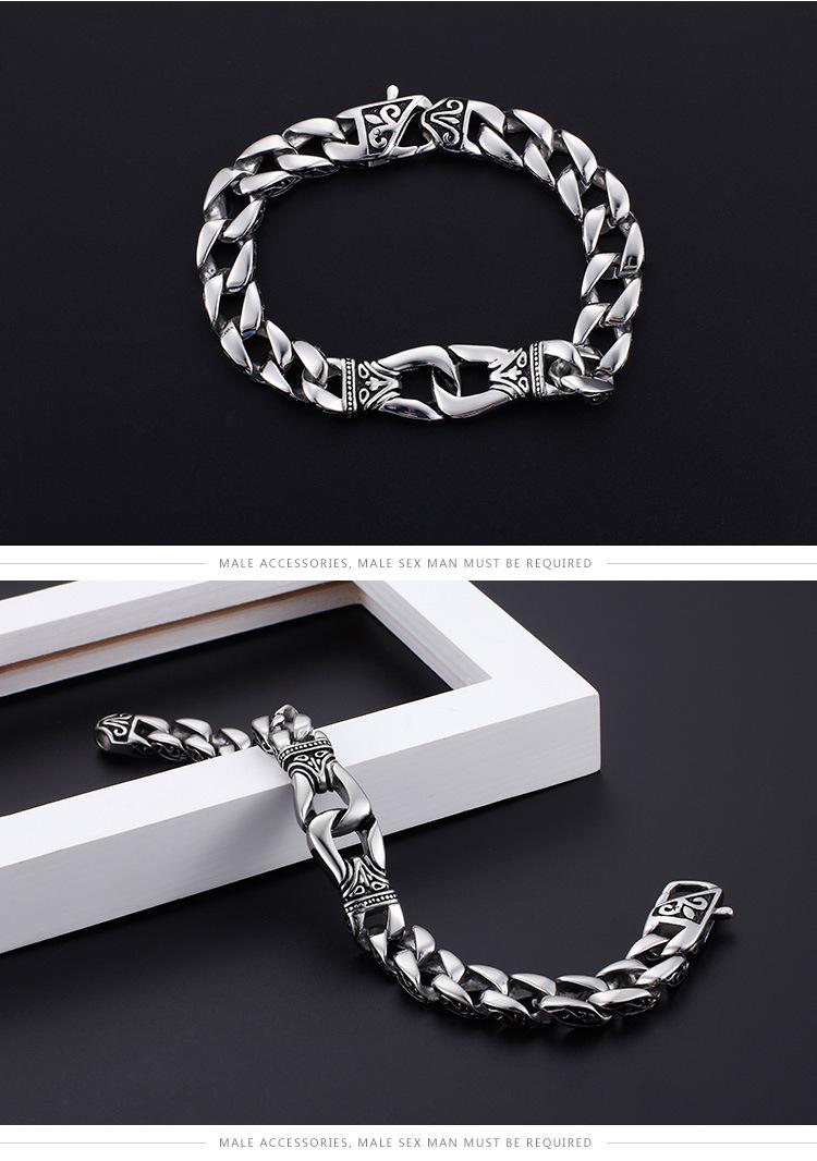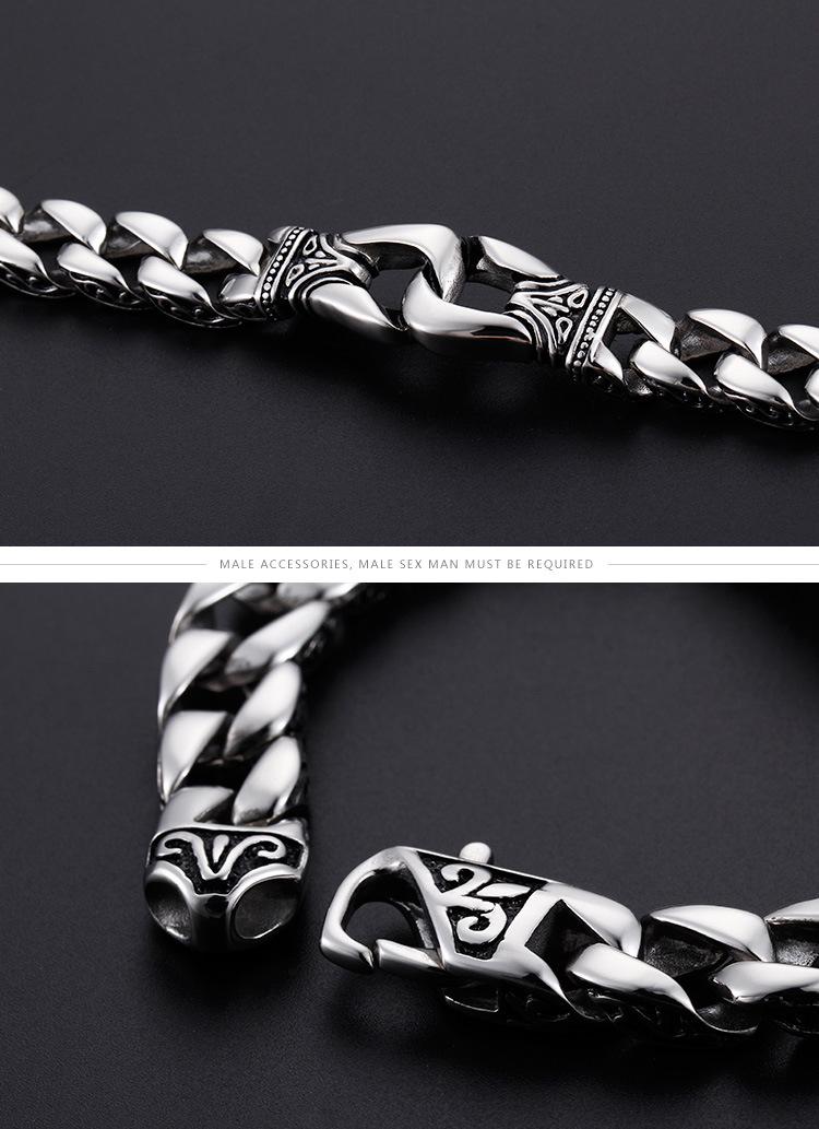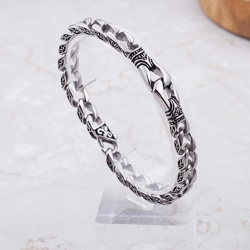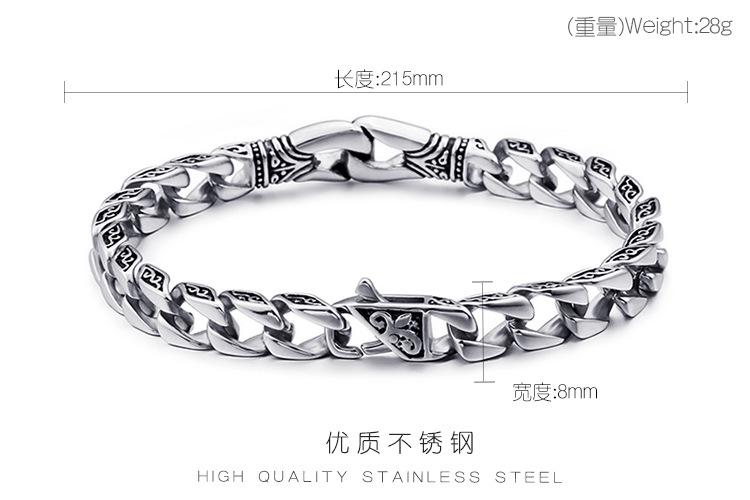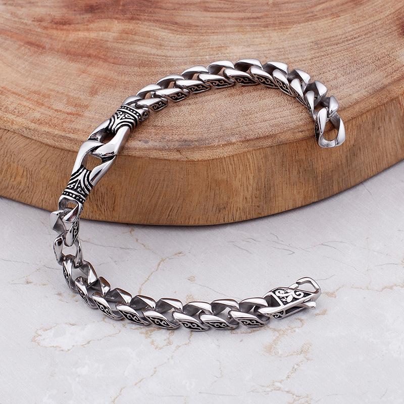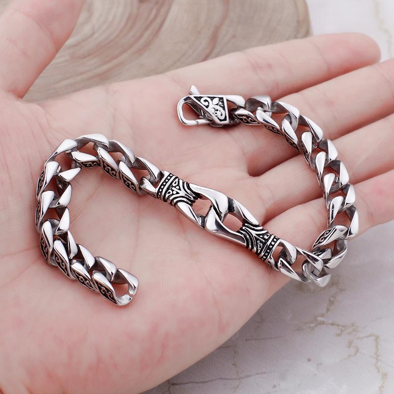 Pulseira Clássica Europeia e Americana com Padrão Retrô Aço Inoxidável Personalidade Masculina Aço Titânio Corrente Cubana Joia Pulseira Atacado
