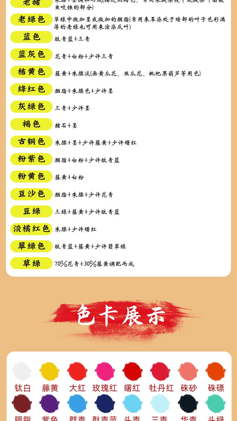 Pigmento para Pintura Chinesa Marley 12ml Cor Única Amarelo Vinha Flor Verde Alvorada Branco Titânio Tinta Pincel 64 Conjunto