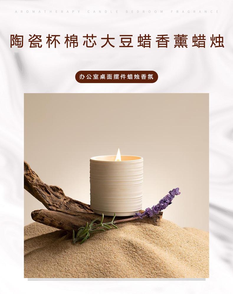 Vela perfumada de cera de soja em formato de xícara de cerâmica romântica, decoração de mesa de escritório, ornamentos, vela perfumada