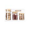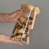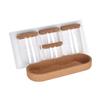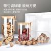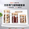 Frascos de Vidro Selados por Atacado Garrafas de Condimento com Tampas de Madeira e Colheres de Madeira Conjunto de Três Peças Tampa Quadrada Frascos de Armazenamento de Cozinha de Qualidade Alimentar