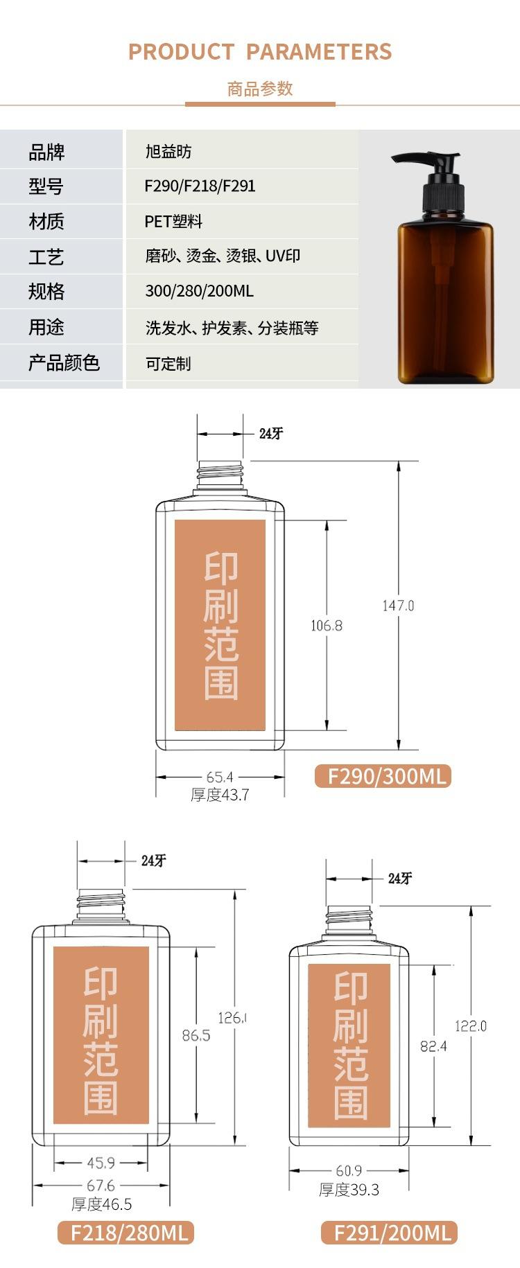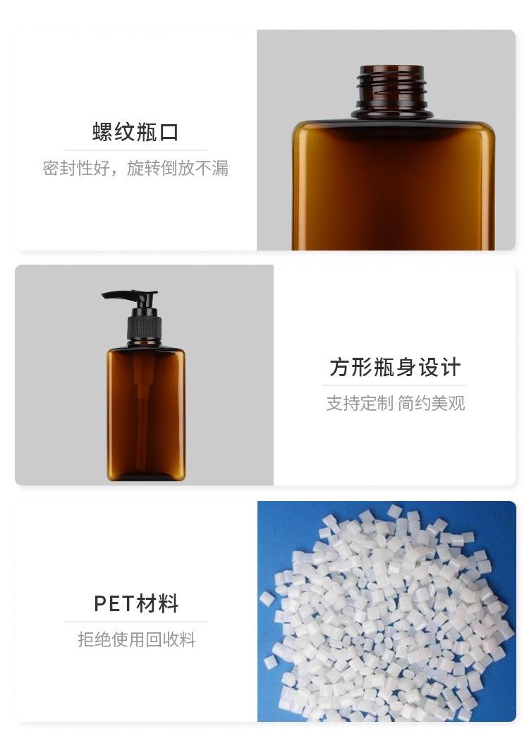 Frasco de Shampoo Personalizado 200/280/300ml Frasco Plástico para Cuidados com Pets Quadrado Plano Sub-Frasco para Shampoo/Gel de Banho