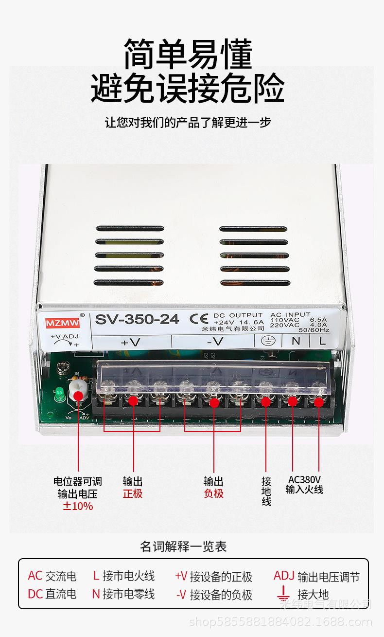 Transformador 380 para 12V24V36V48 Volts CC Sv-350-24 10A20A Fonte de Alimentação Chaveada 380V350W