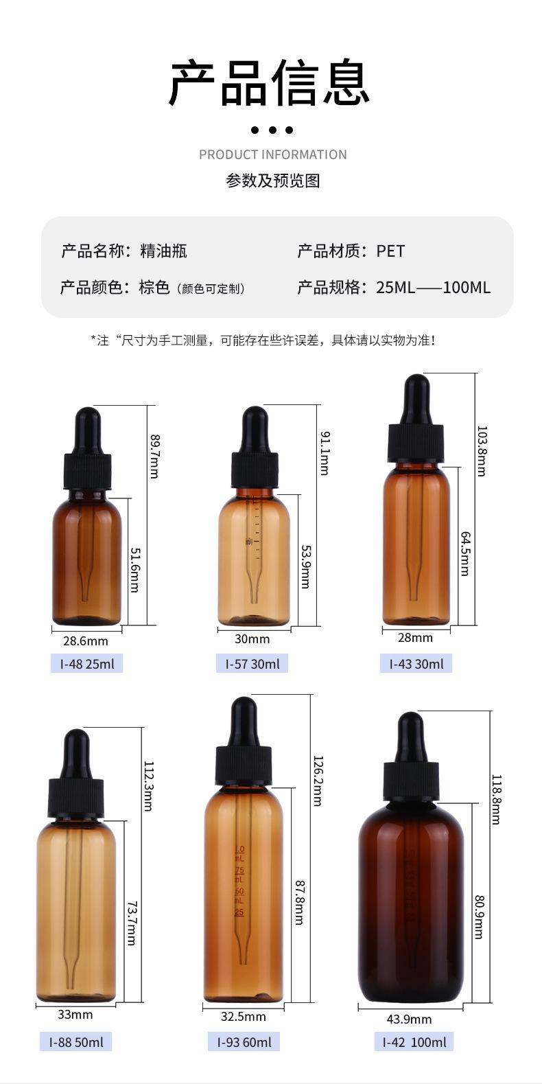 25ml, 30ml, 50ml, 60ml, 100ml