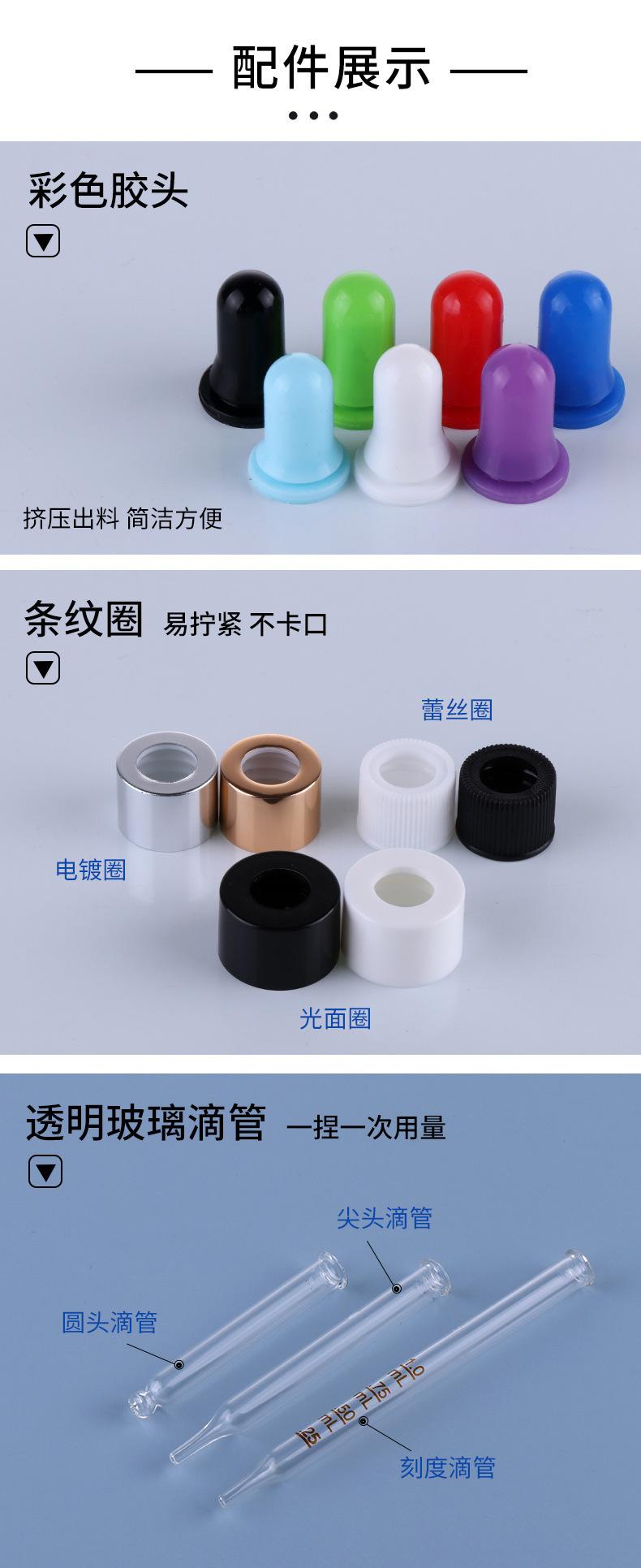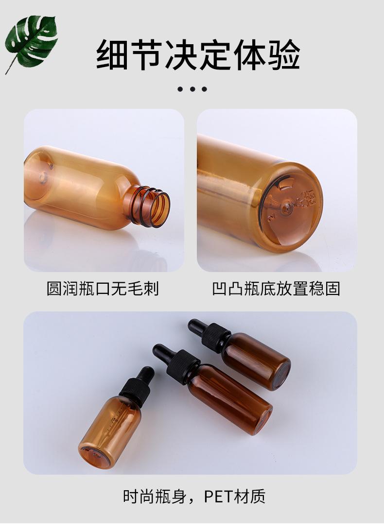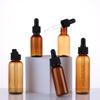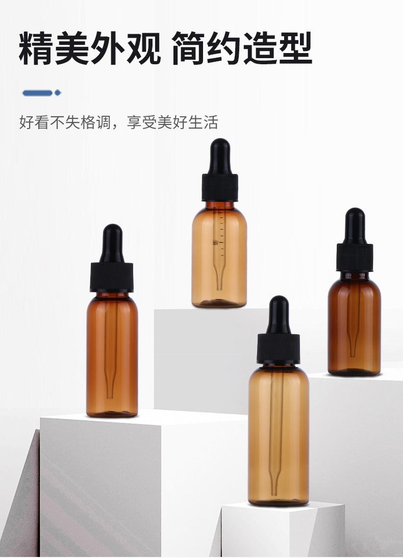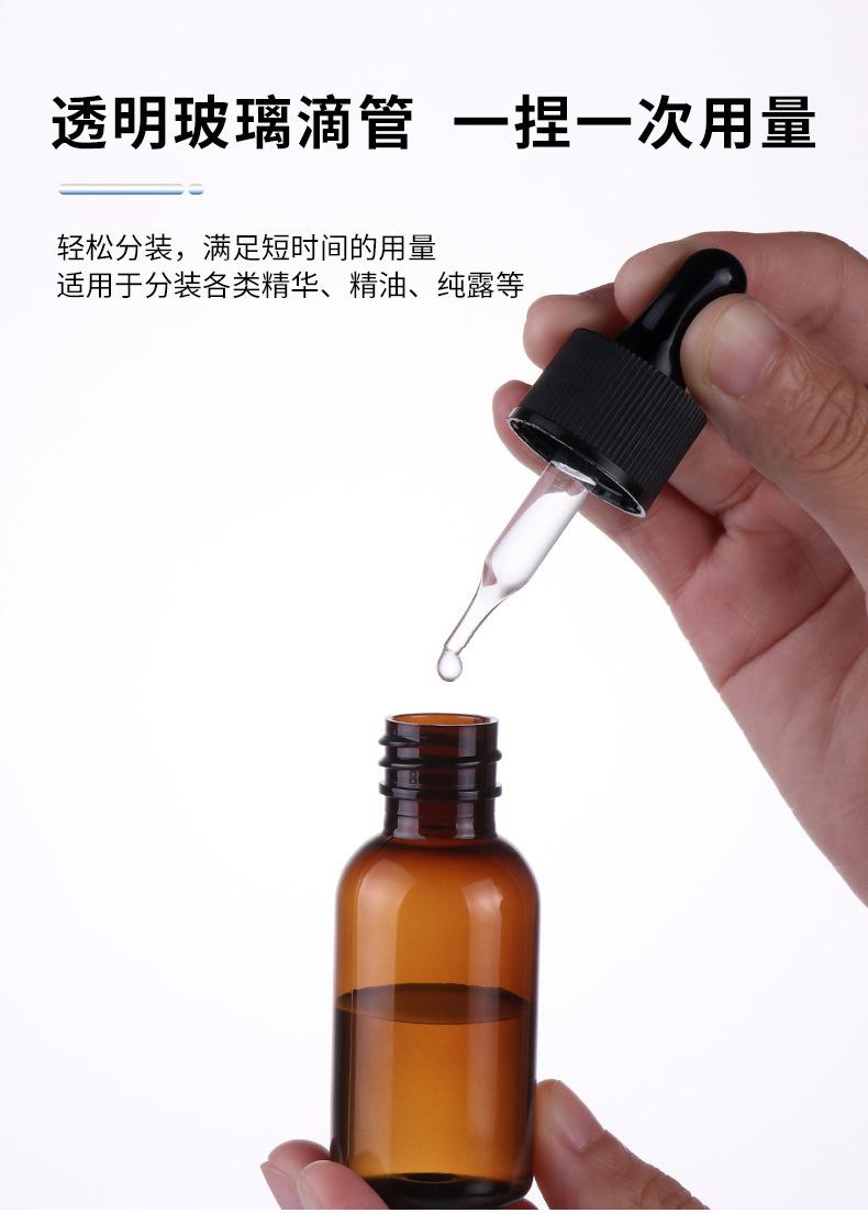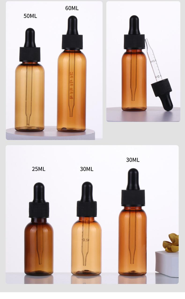 Garrafa de óleo essencial Essência Garrafa de borracha cabeça de vidro conta-gotas Garrafa Dropper Brown Garrafa de plástico Amostra cosmética Líquido Sub-engarrafado