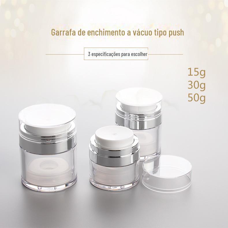 A garrafa de vácuo precisa ser enchida pela primeira vez. Após o uso, um pistão interno empurra automaticamente o produto para cima. Há menos resíduos de ar e de parede da garrafa e basicamente não há desperdício.