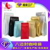 Saco de café selado de oito lados, válvula de ar banhada a alumínio, zíper lateral, grão de café, saco de embalagem de pó de café fácil de rasgar, saco de chá fácil de rasgar saco de zíper, saco de chá