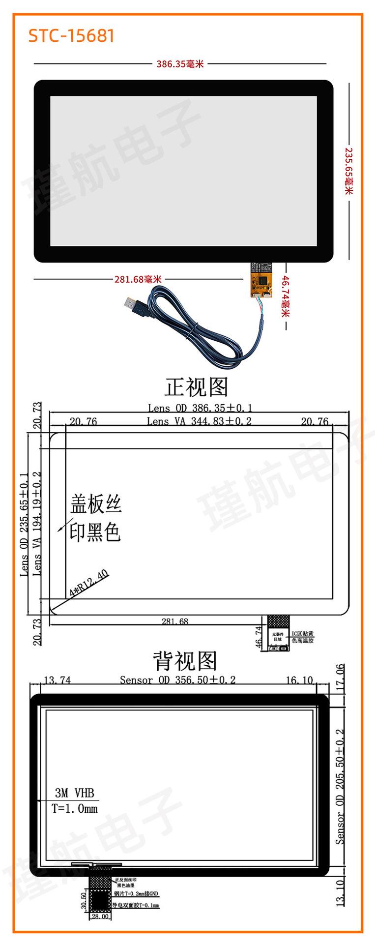 Tela capacitiva de 15,6 polegadas IIC + interface USB 16:9 tela de toque capacitiva médica de controle industrial multitoque em estoque