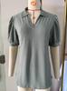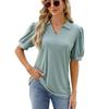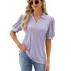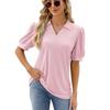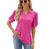 Amazon Comércio exterior transfronteiriço europeu e americano 2024 primavera e verão nova lapela de cor sólida top de camiseta de manga curta solta para mulheres em estoque