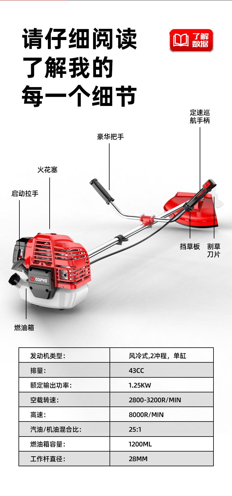 TOPWE cortador de grama a gasolina de dois tempos de alta velocidade, cortador de grama, colhedor de trigo, cortador de grama agrícola