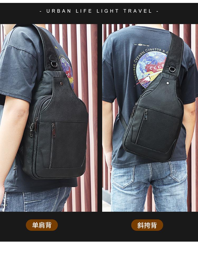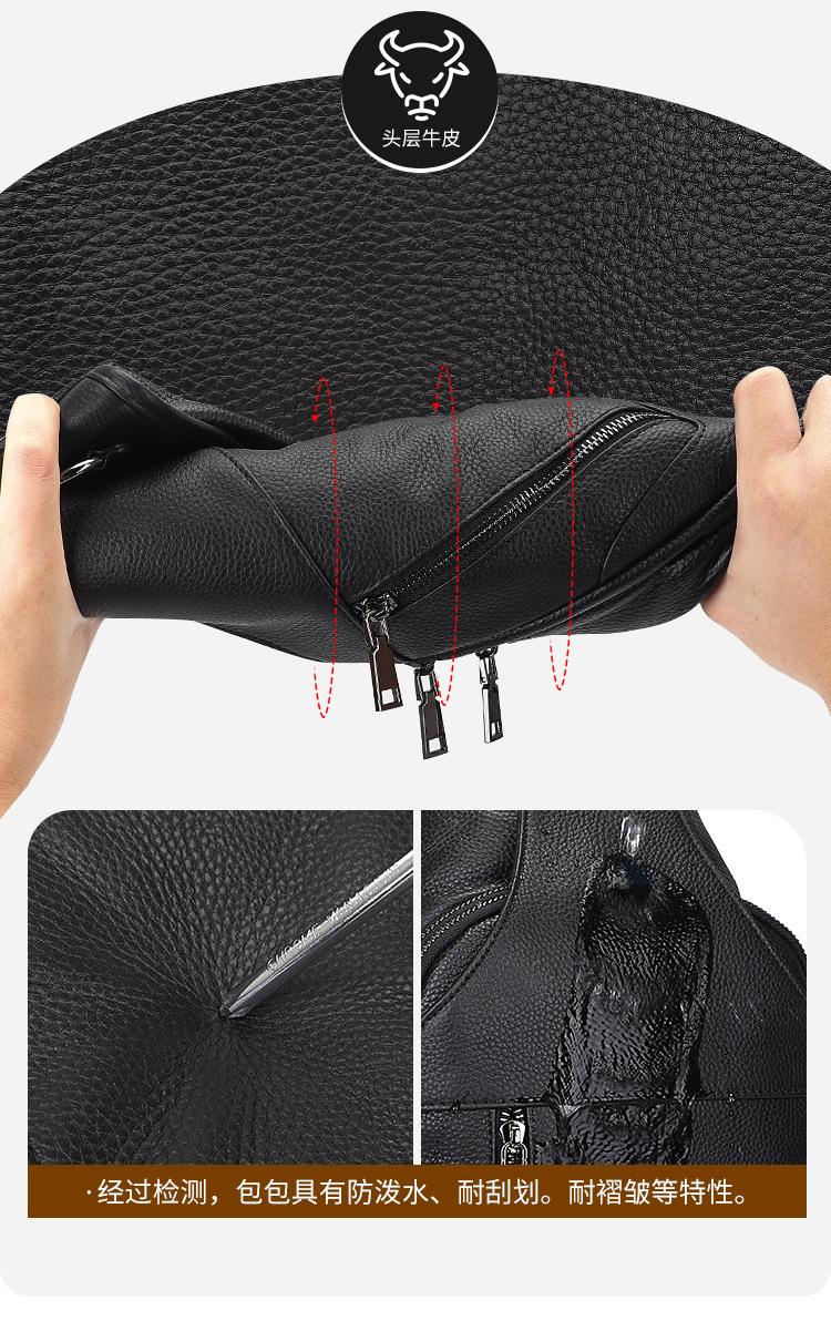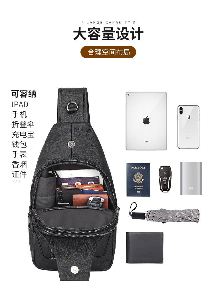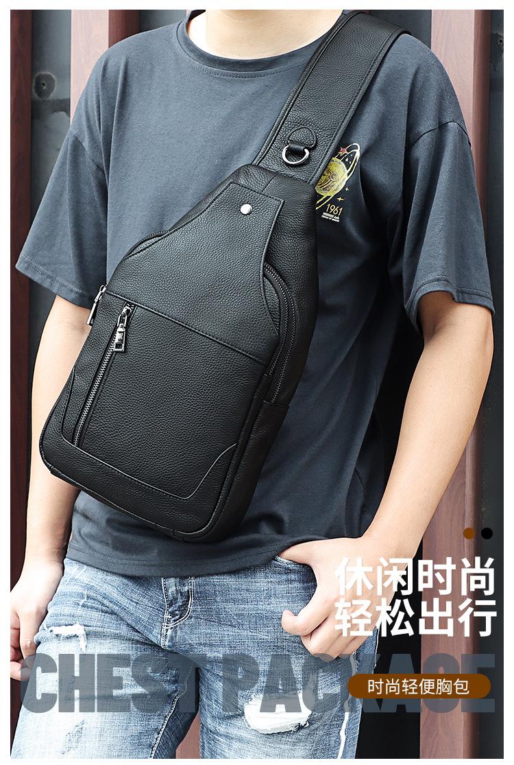 Compre Processamento e personalização de bolsa de peito de couro genuíno à prova d'água Bolsa esportiva masculina de primeira camada Bolsa esportiva de couro de vaca Bolsa transversal de grande capacidade Bolsa de ombro frontal masculina no atacado no Joom.pro