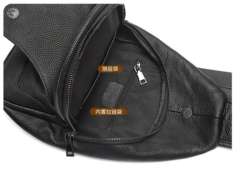 Processamento e personalização de bolsa de peito de couro genuíno à prova d'água Bolsa esportiva masculina de primeira camada Bolsa esportiva de couro de vaca Bolsa transversal de grande capacidade Bolsa de ombro frontal masculina