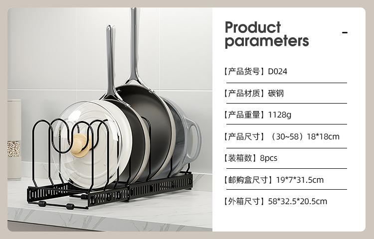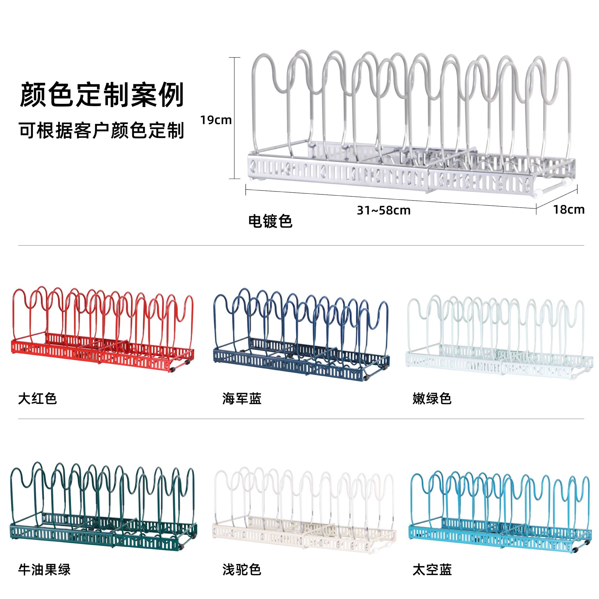 Suporte de Armazenamento de Panelas de Ferro Transfronteiriço Multicamadas Ajustável para Cozinha Suporte de Tampas de Panelas Retrátil de Mesa Multifuncional