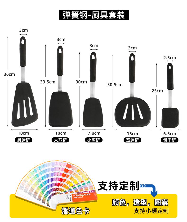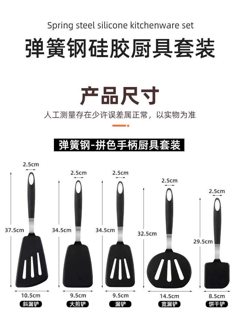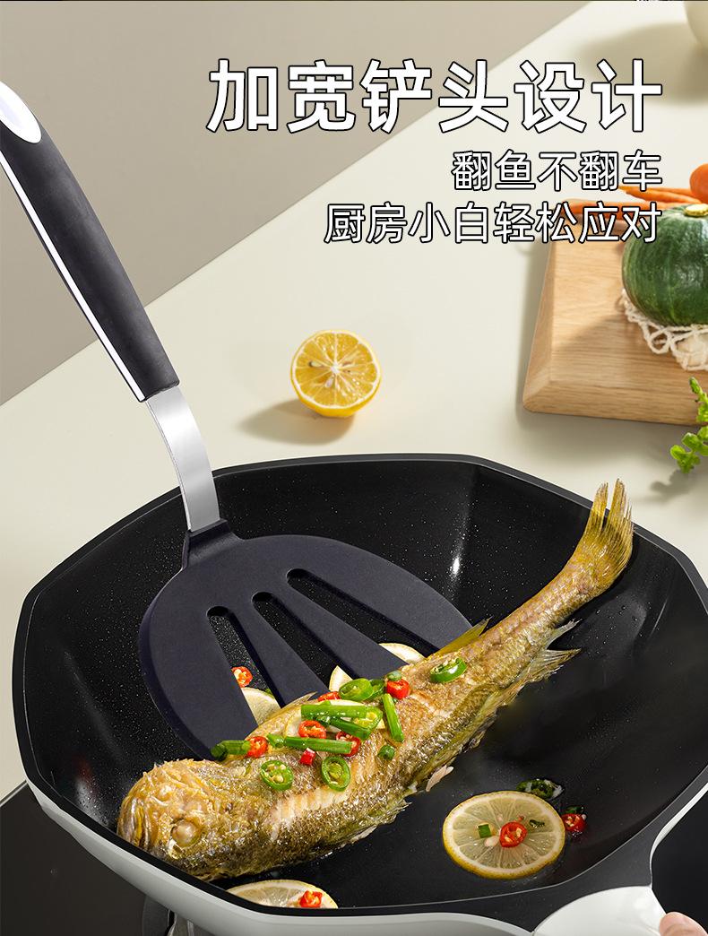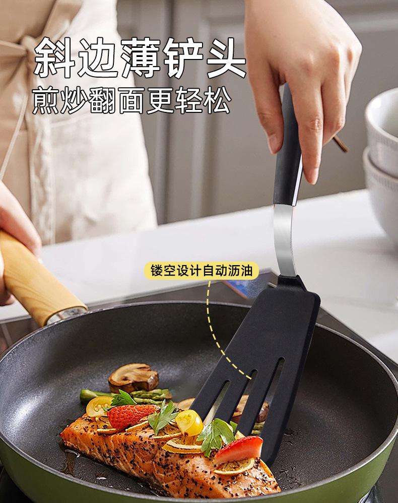 Nome: alça de aço inoxidável transfronteiriça espátula de fritura de silicone utensílios de cozinha espátula de cozimento espátula antiaderente panela antiaderente resistente a altas temperaturas espátula de fritura de peixe atacado