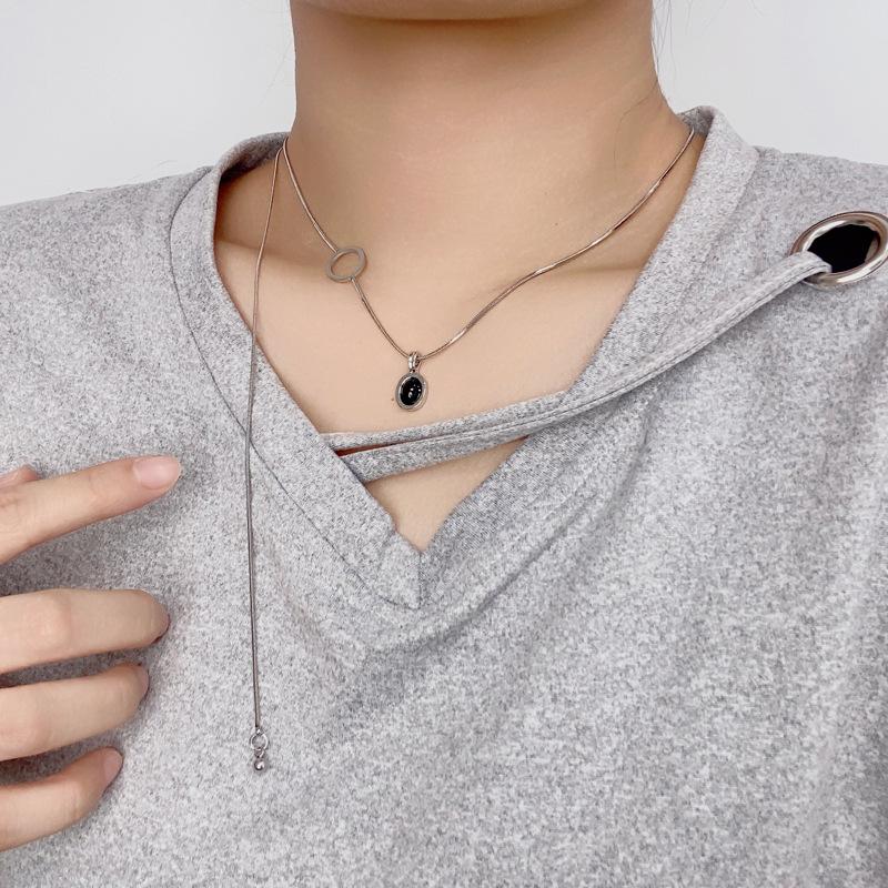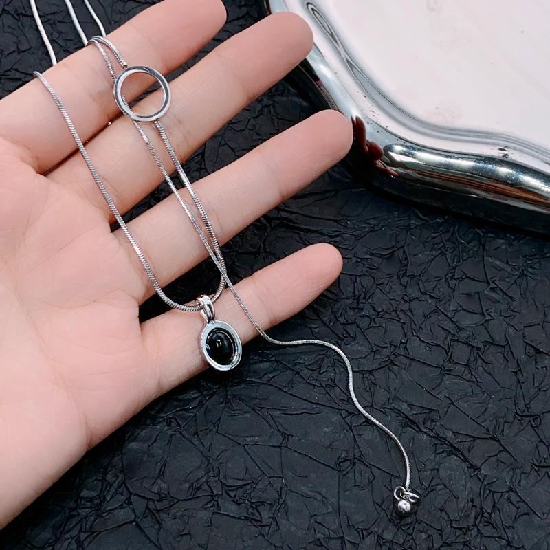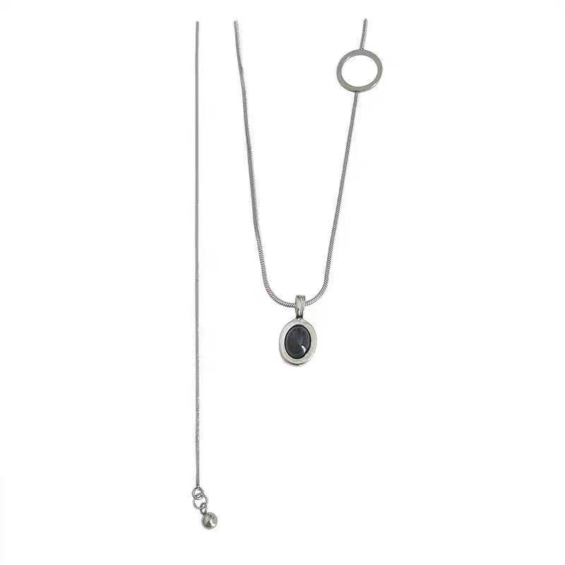 Colar de contas de zircão preto retrô moderno para homens e mulheres estilo frio design de nicho temperamento simples all-match cadeia de suéter