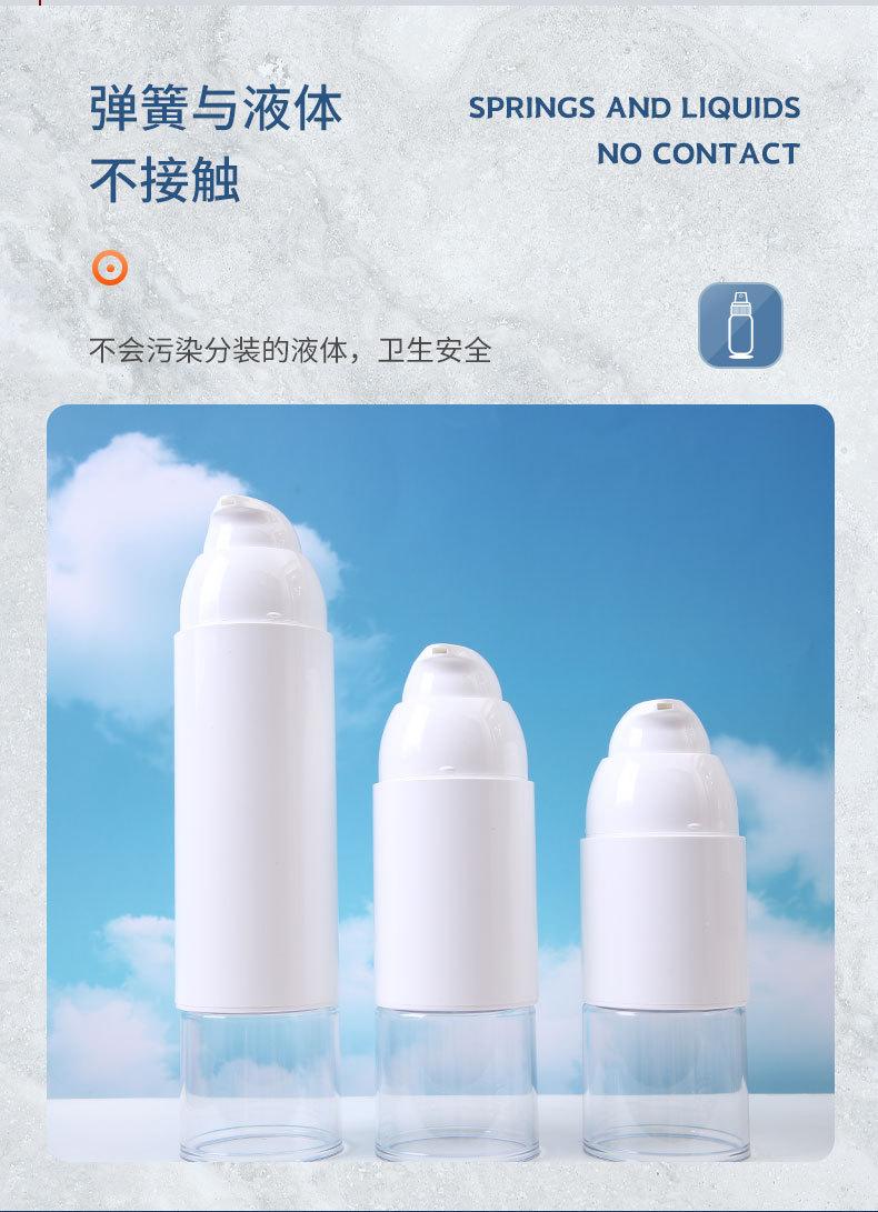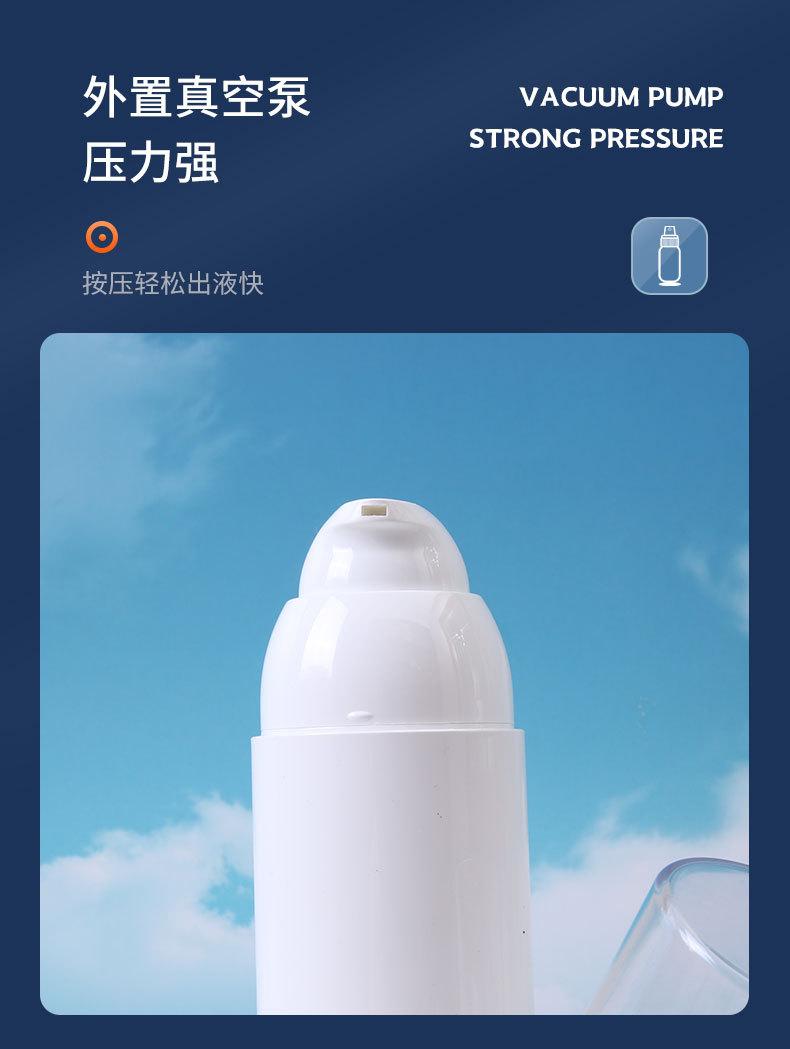 A garrafa de vácuo precisa ser enchida pela primeira vez. Após o uso, um pistão interno empurra automaticamente o produto para cima. Há menos resíduos de ar e de parede da garrafa e basicamente não há desperdício.