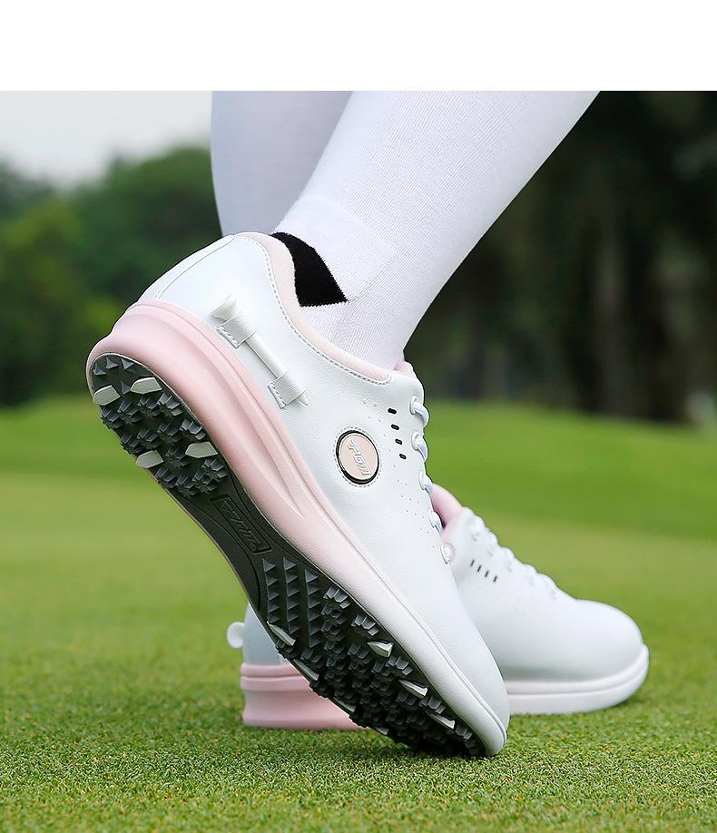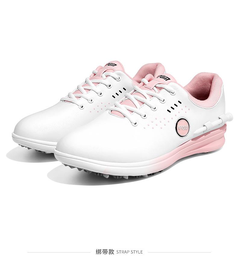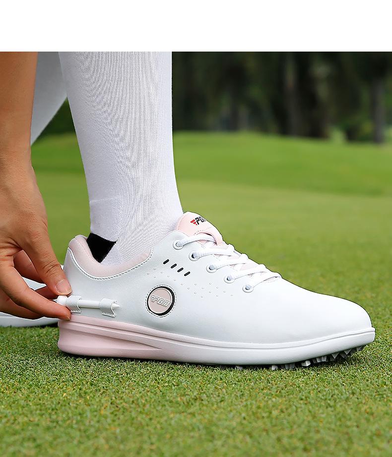 Sapatos de Golfe Pgm para Mulheres, Estilo Twist-Lock/Estilo Cadarço, Sapatos Esportivos de Golfe para Mulheres, Sapatos Femininos Impermeáveis de Microfibra Antiderrapante