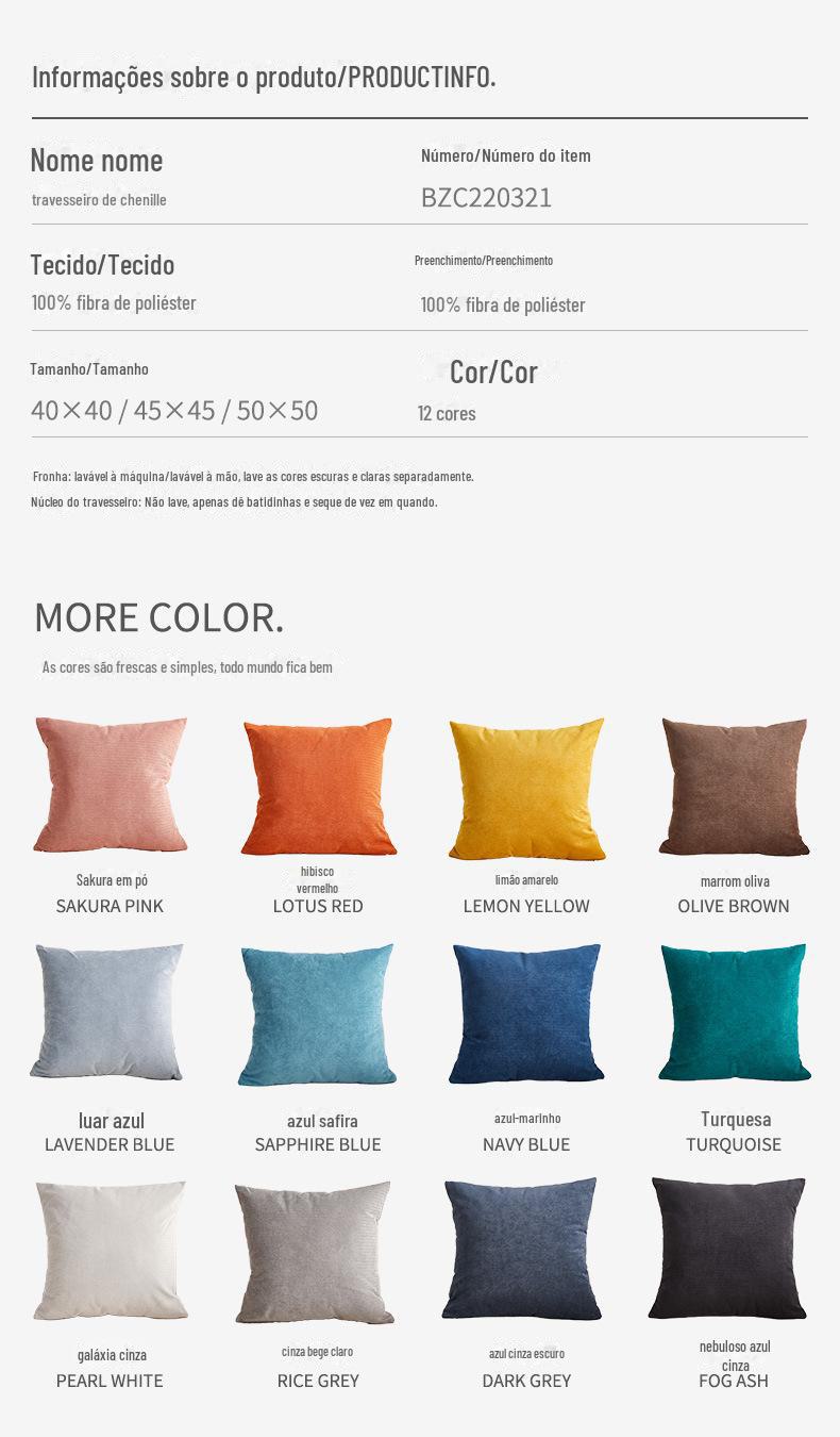 Almofada Casual Estilo Escandinavo Almofada Cor Pura Sofá Sala de Estar Almofada de Cabeceira Cadeira Encosto Grande Almofada de Cintura para Escritório Fronha
