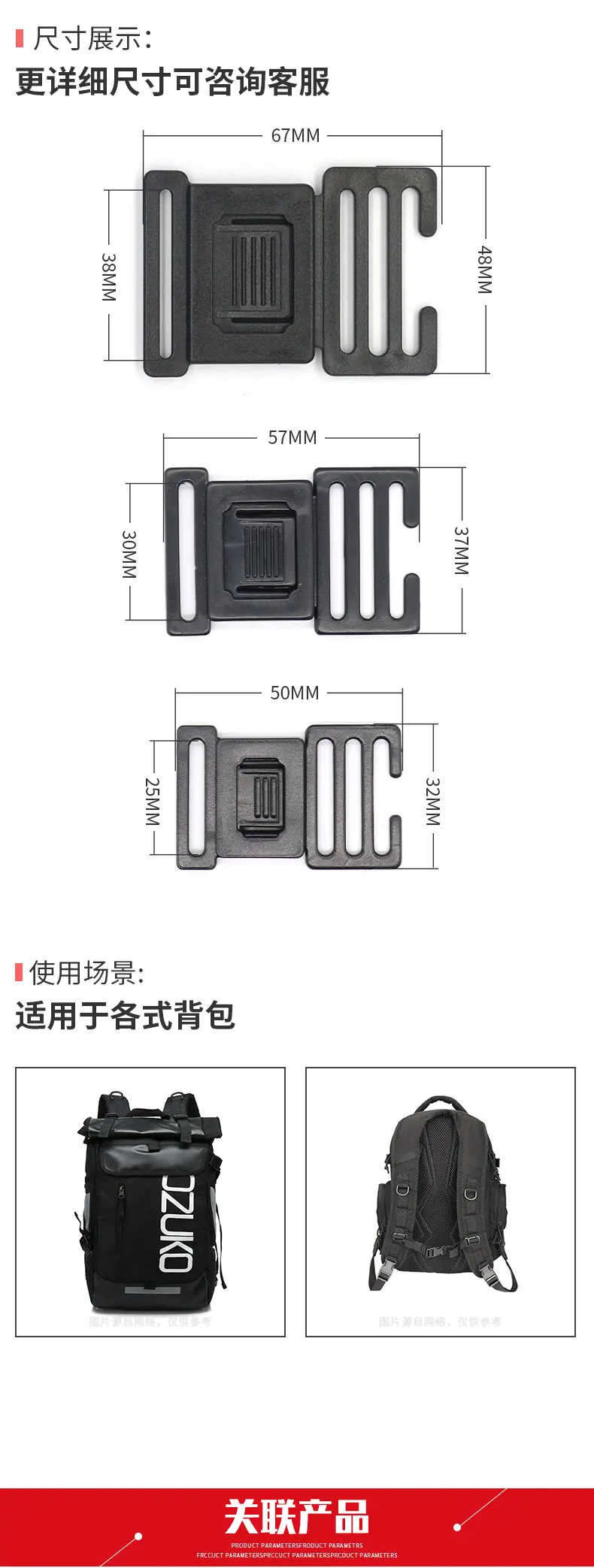 Fornecimento direto da fábrica de acessórios de bagagem de plástico bolsa de cintura fivela de puxar única fivela de correia fivela de mochila fivela de plástico