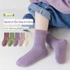 Meias Infantis 2025 Outono e Inverno Novas Cor Pura Listradas Agulha Dupla Meias de Meia Panturrilha para Crianças Meias Estudantis Coloridas Doces para Meninos e Meninas