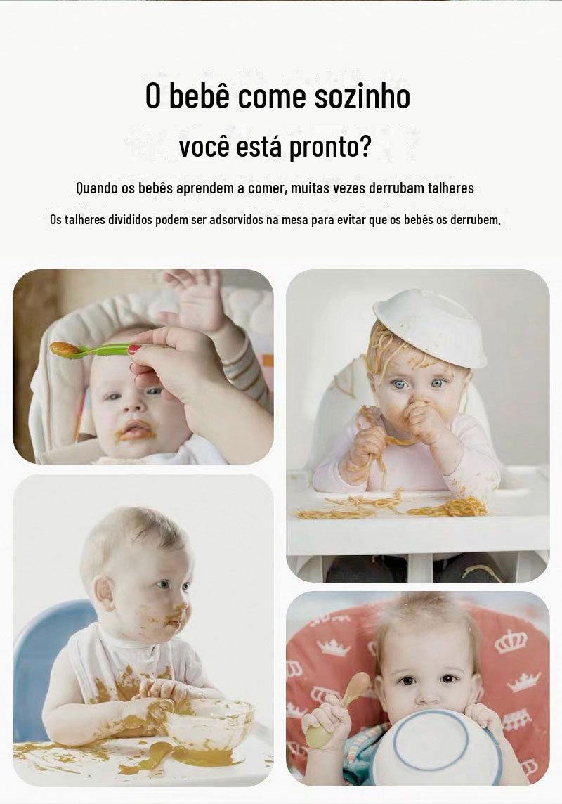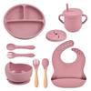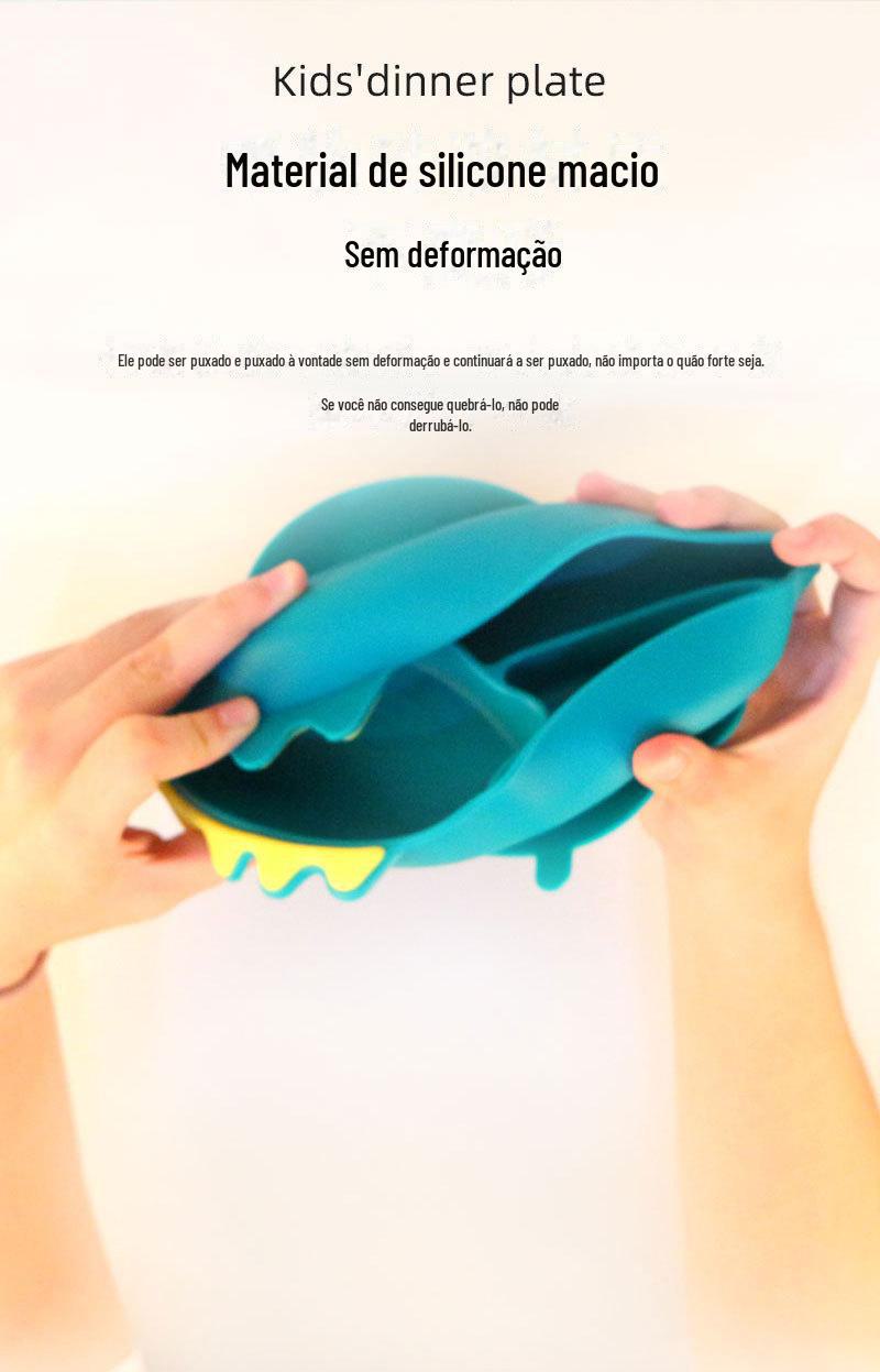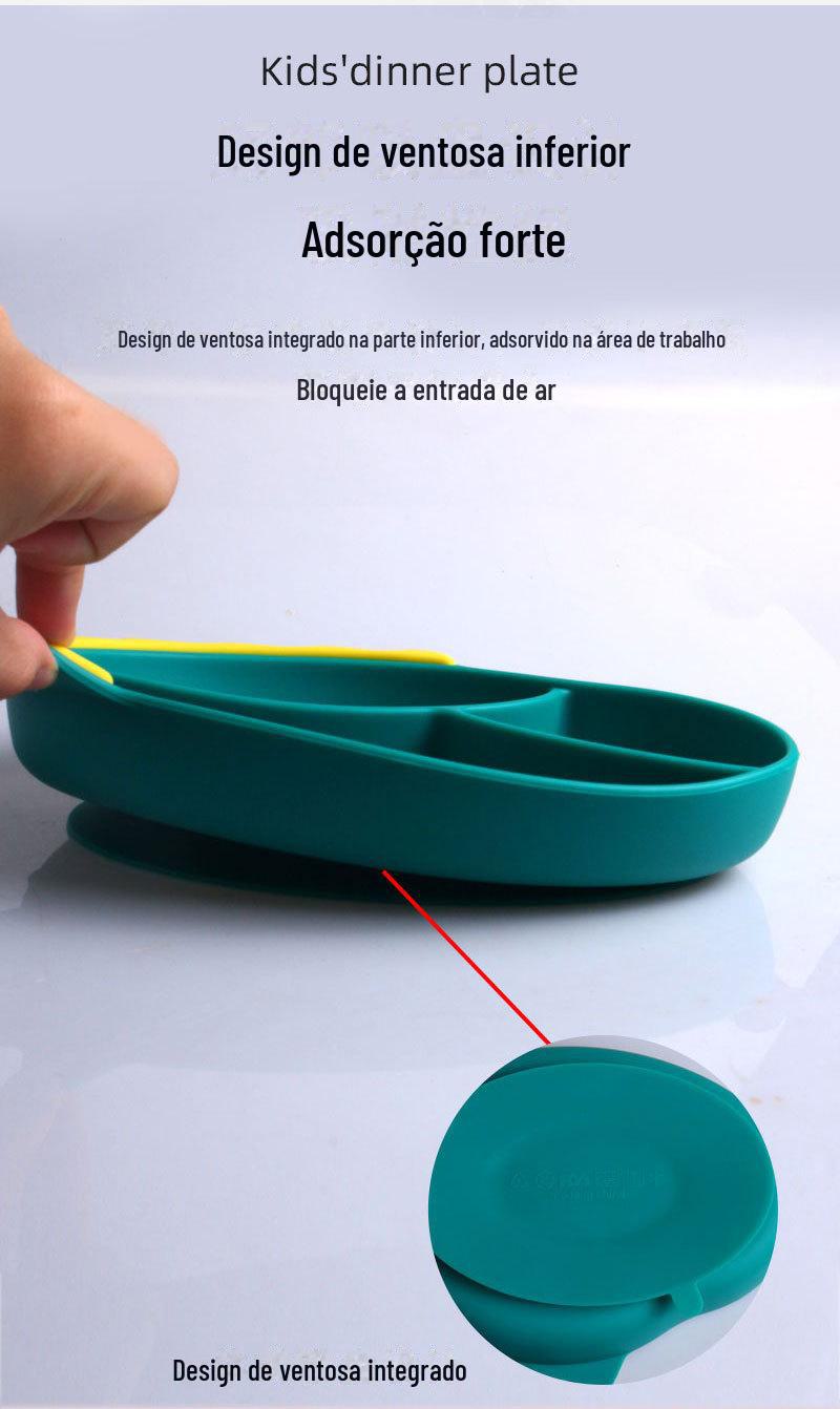 Conjunto de Prato de Jantar de Silicone Mais Vendido Transfronteiriço Tigela para Comida de Bebê Garfo Colher Babador Conjunto de Talheres Infantis