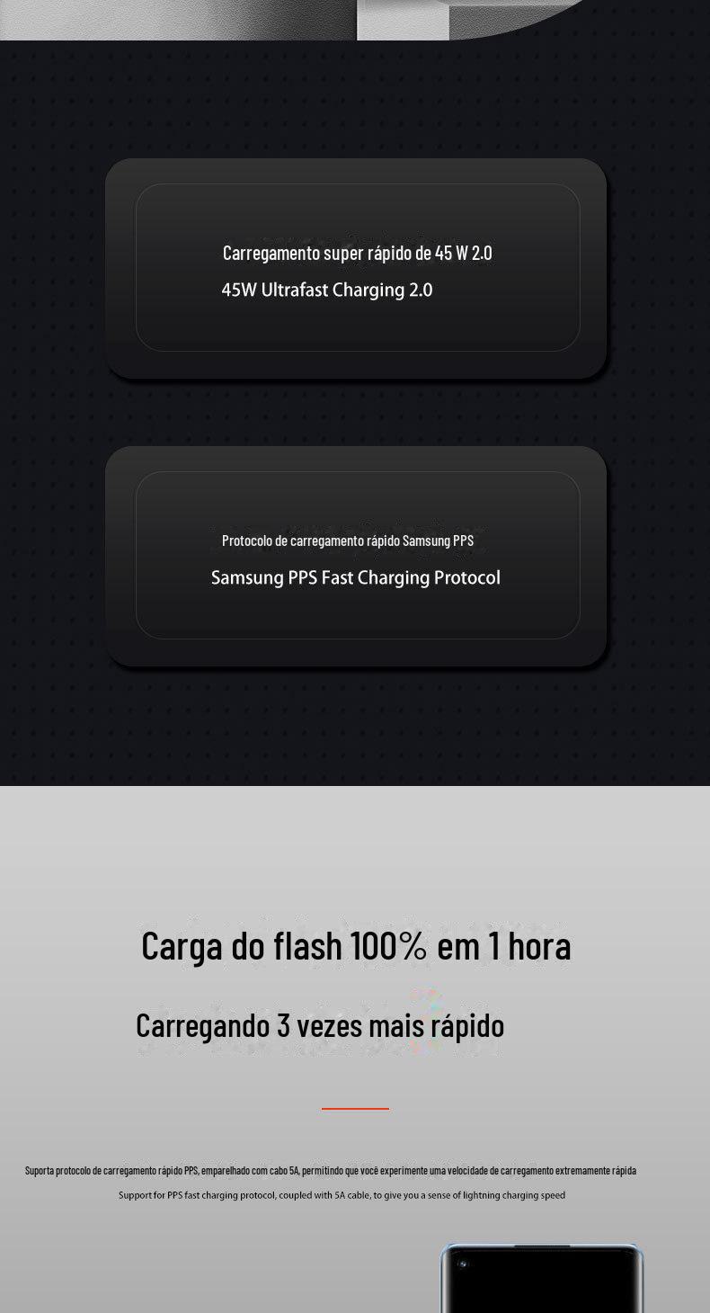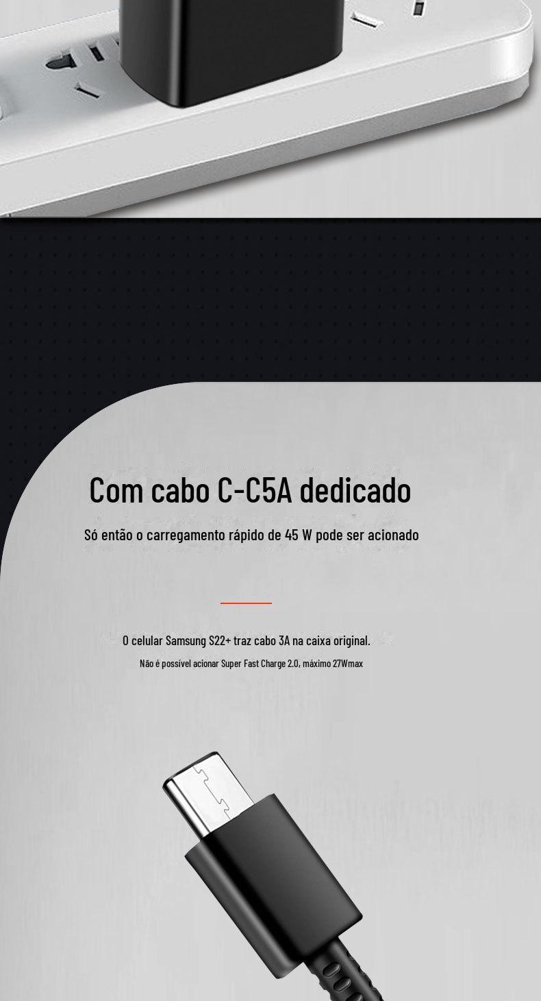 Carregador Samsung 45W Mais Vendido Transfronteiriço Carregador Adequado para Samsung S22S21S20 Apple 16 Carregador